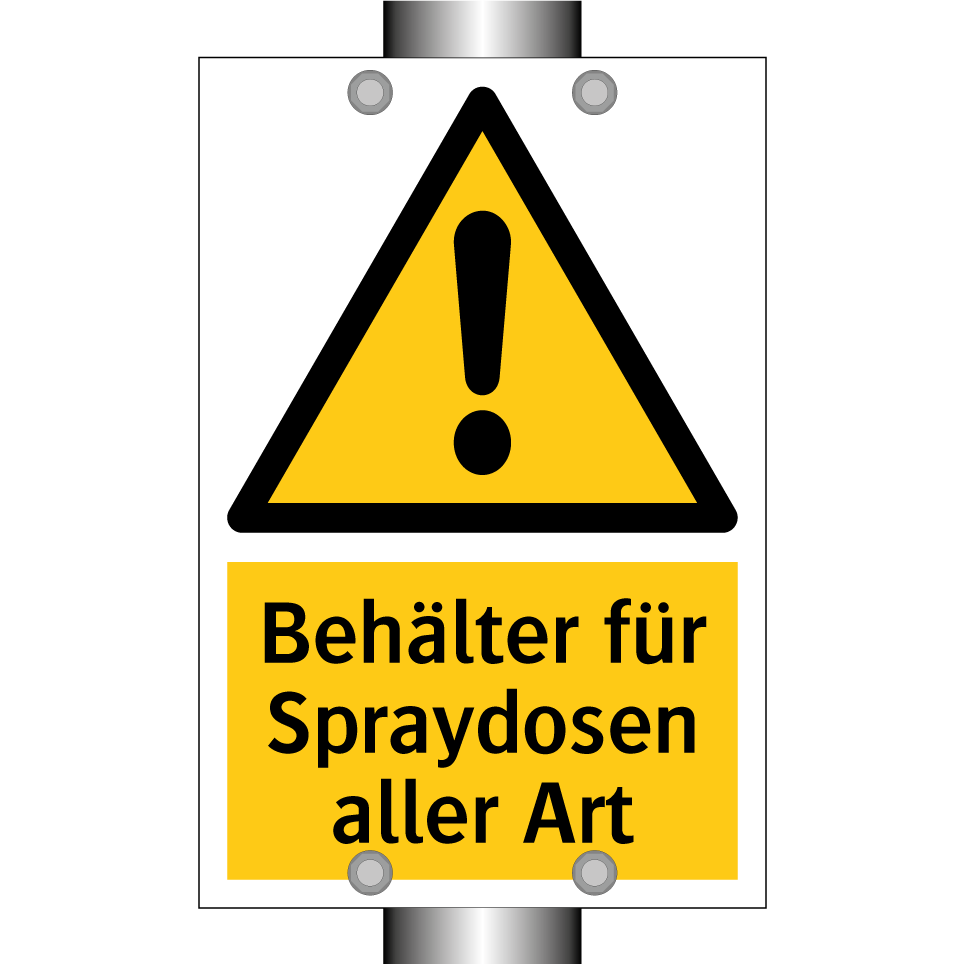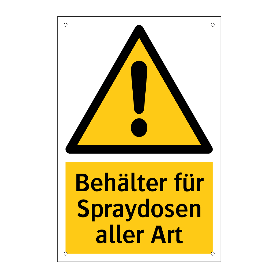 Warnschild mit dem Text Behälter für Spraydosen aller Art