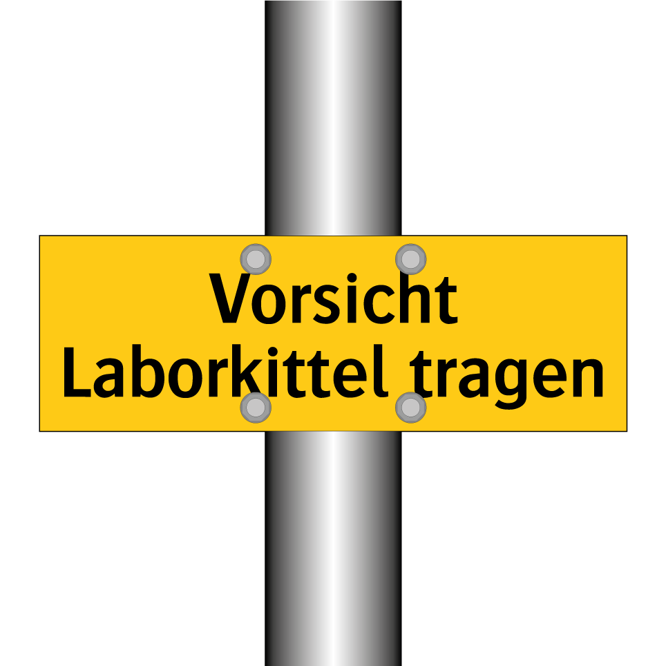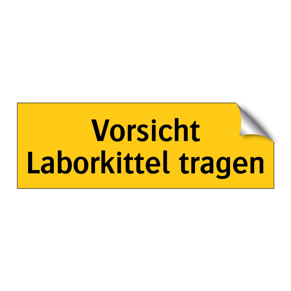 Warnschild mit dem Text Vorsicht Laborkittel tragen