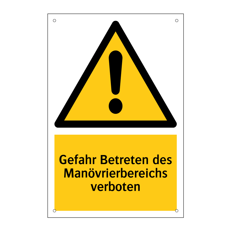 Warnschild mit dem Text Gefahr Betreten des Manövrierbereichs verboten