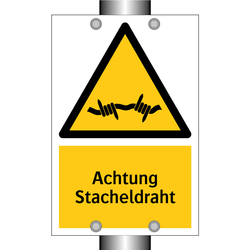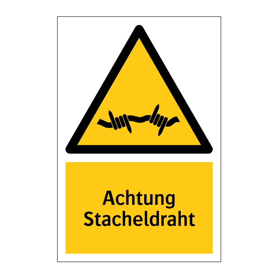 Diese Warnschild mit gelbem Hintergrund und schwarzem Text ist ideal, um auf Gefahren durch Stacheldraht hinzuweisen. Es eignet sich hervorragend für den Einsatz in Bereichen, in denen Stacheldrahtzäune installiert sind, wie z.B. auf Baustellen, in Industriegebieten oder an privaten Grundstücksgrenzen. Durch die auffällige Farbgebung und das klare Symbol wird die Aufmerksamkeit effektiv auf mögliche Verletzungsgefahren gelenkt. Platzieren Sie das Warnschild an gut sichtbaren Stellen, um Passanten und Mitarbeiter rechtzeitig zu warnen und Unfälle zu vermeiden. Diese Warnschilder sind ein unverzichtbares Element für die Sicherheit und den Schutz in gefährdeten Bereichen.