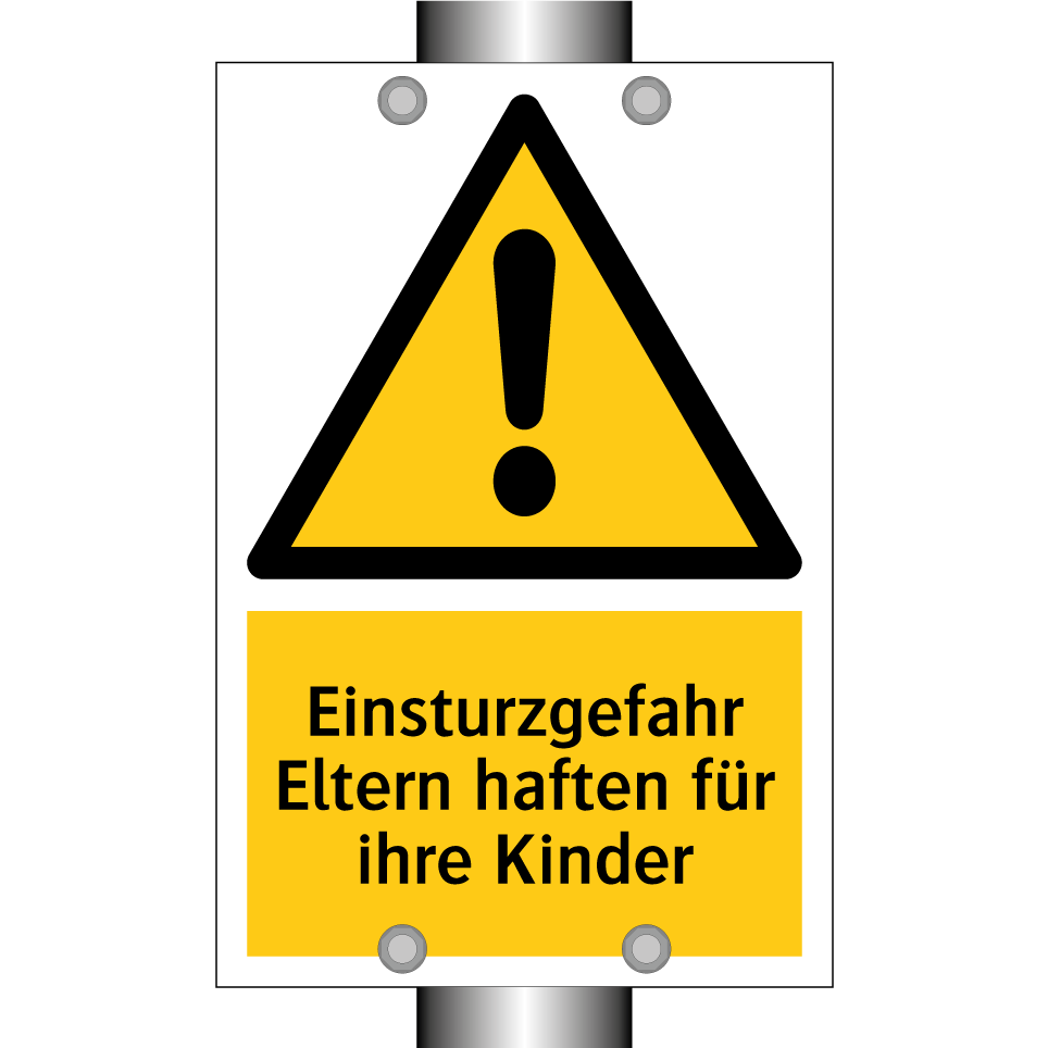 Warnschild mit dem Text Einsturzgefahr Eltern haften für ihre Kinder