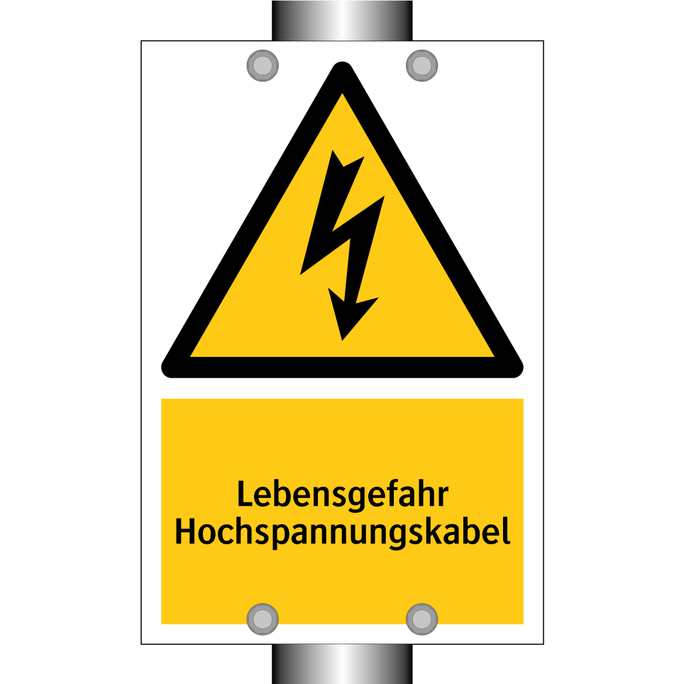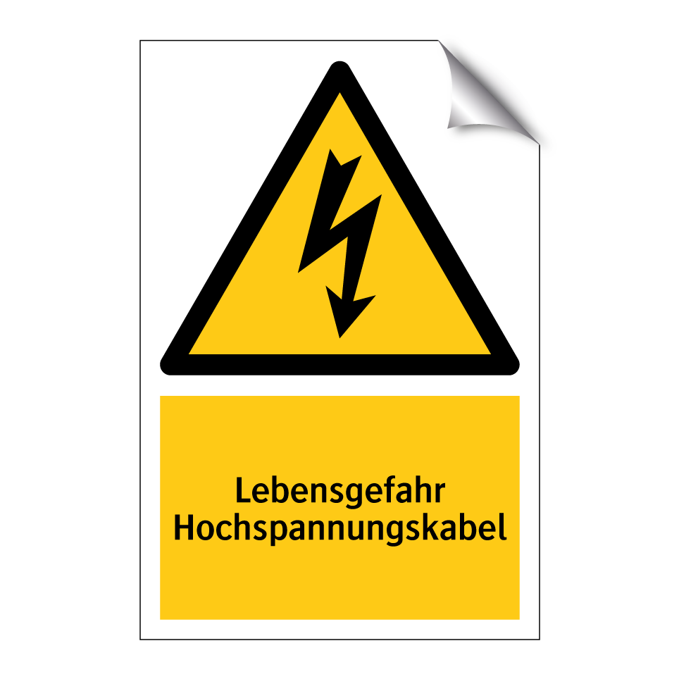 Warnschild mit dem Text Lebensgefahr Hochspannungskabel