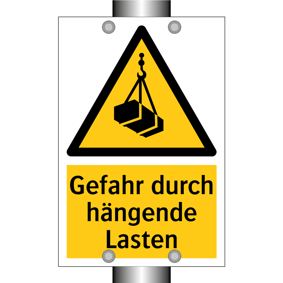 Warnschild mit dem Text Gefahr durch hängende Lasten