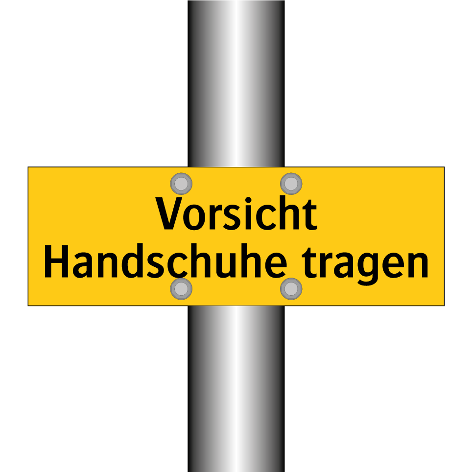Warnschild mit dem Text Vorsicht Handschuhe tragen