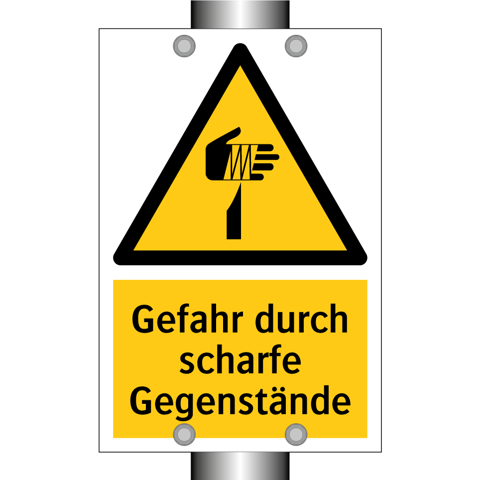 Warnschild mit dem Text Gefahr durch scharfe Gegenstände