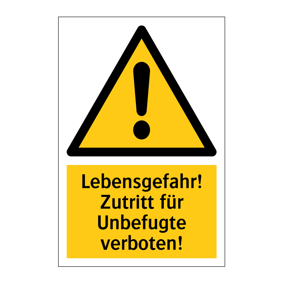 Warnschild mit dem Text Lebensgefahr! Zutritt für Unbefugte verboten!