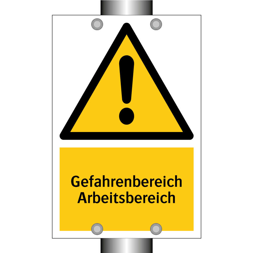 Warnschild mit dem Text Gefahrenbereich Arbeitsbereich
