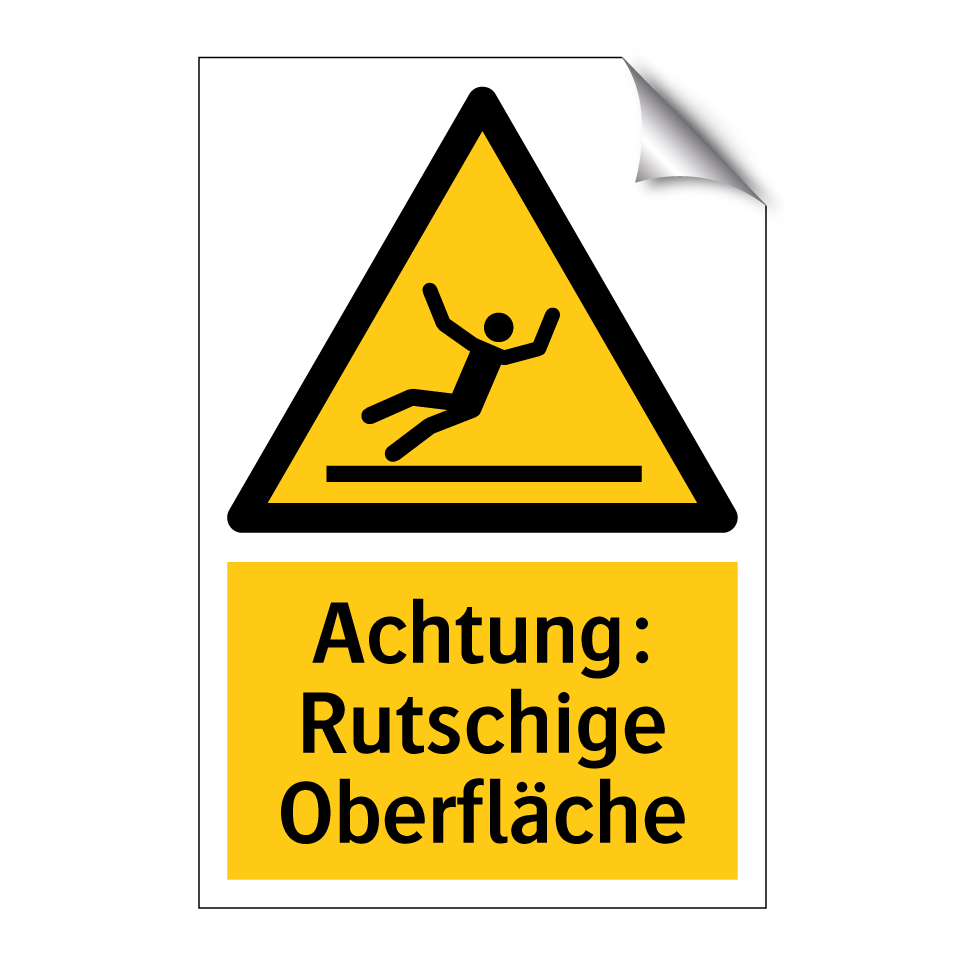 Warnschild mit dem Text Achtung: Rutschige Oberfläche