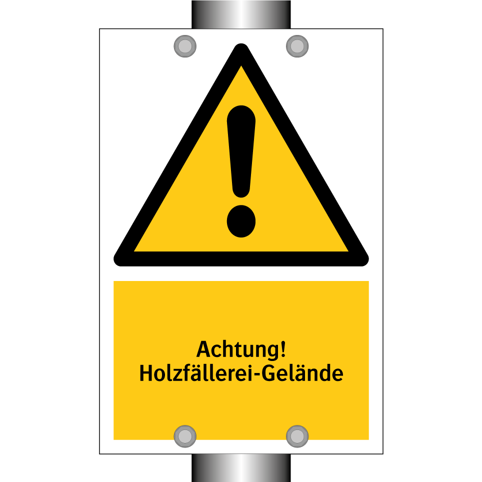 Warnschild mit dem Text Achtung! Holzfällerei-Gelände