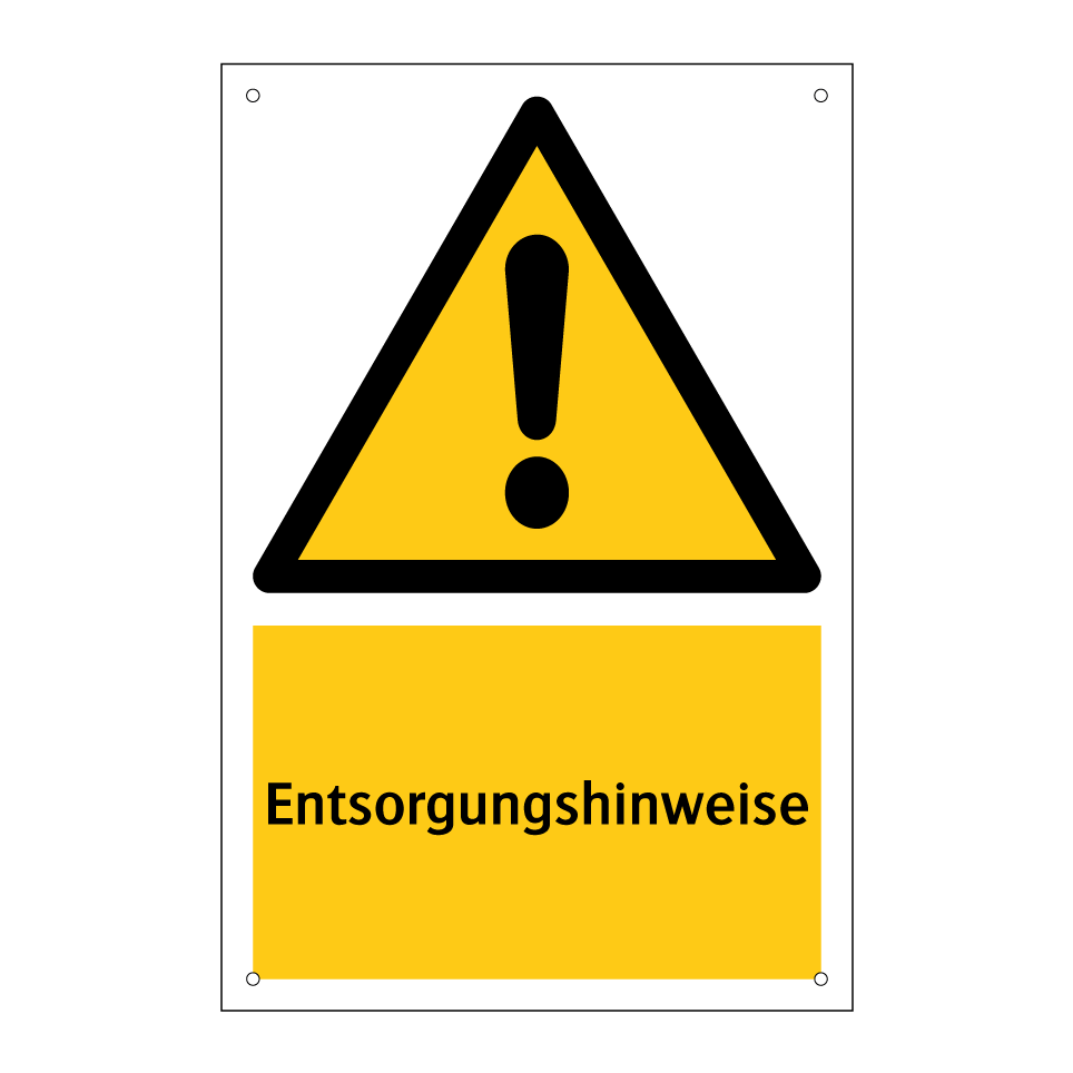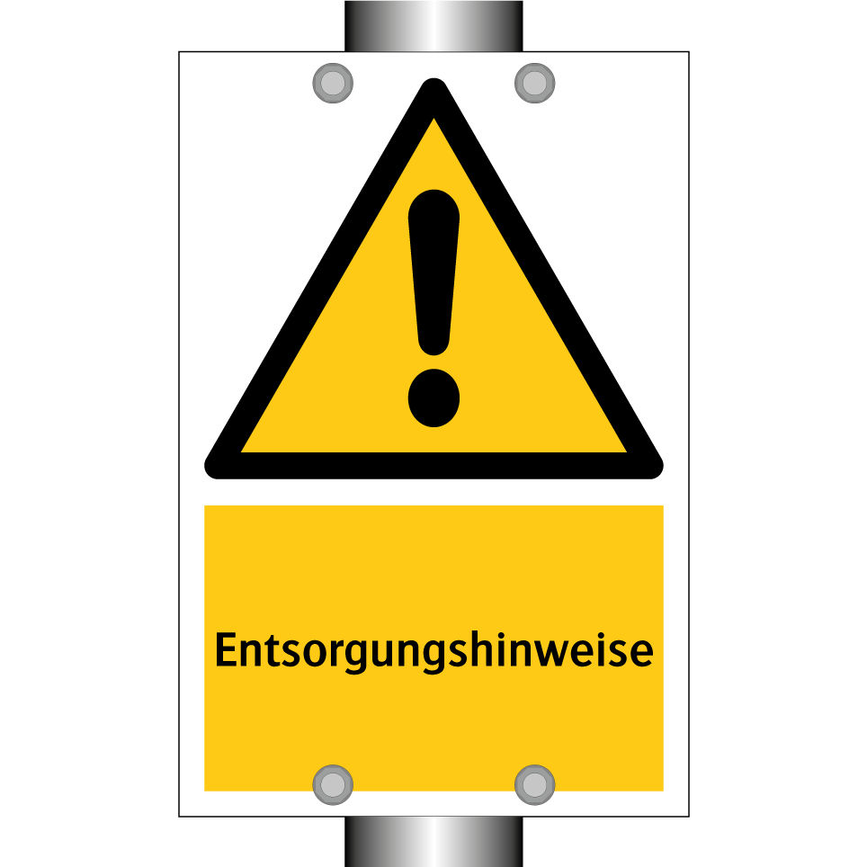Diese Warnschild mit gelbem Hintergrund und schwarzer Schrift ist ideal, um wichtige Entsorgungshinweise klar und deutlich zu kommunizieren. Sie eignet sich hervorragend für den Einsatz in Industrieanlagen, Lagerhäusern oder Recyclingzentren, wo korrekte Entsorgungspraktiken entscheidend sind. Die auffällige Symbolik sorgt dafür, dass die Botschaft nicht übersehen wird, und trägt zur Sicherheit und Ordnung bei. Platzieren Sie die Warnschilder an strategischen Punkten, um Mitarbeiter und Besucher effektiv zu informieren und zu leiten. Diese Beschilderung ist ein unverzichtbares Element für jeden Betrieb, der Wert auf umweltgerechte Entsorgung legt.