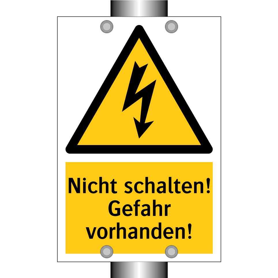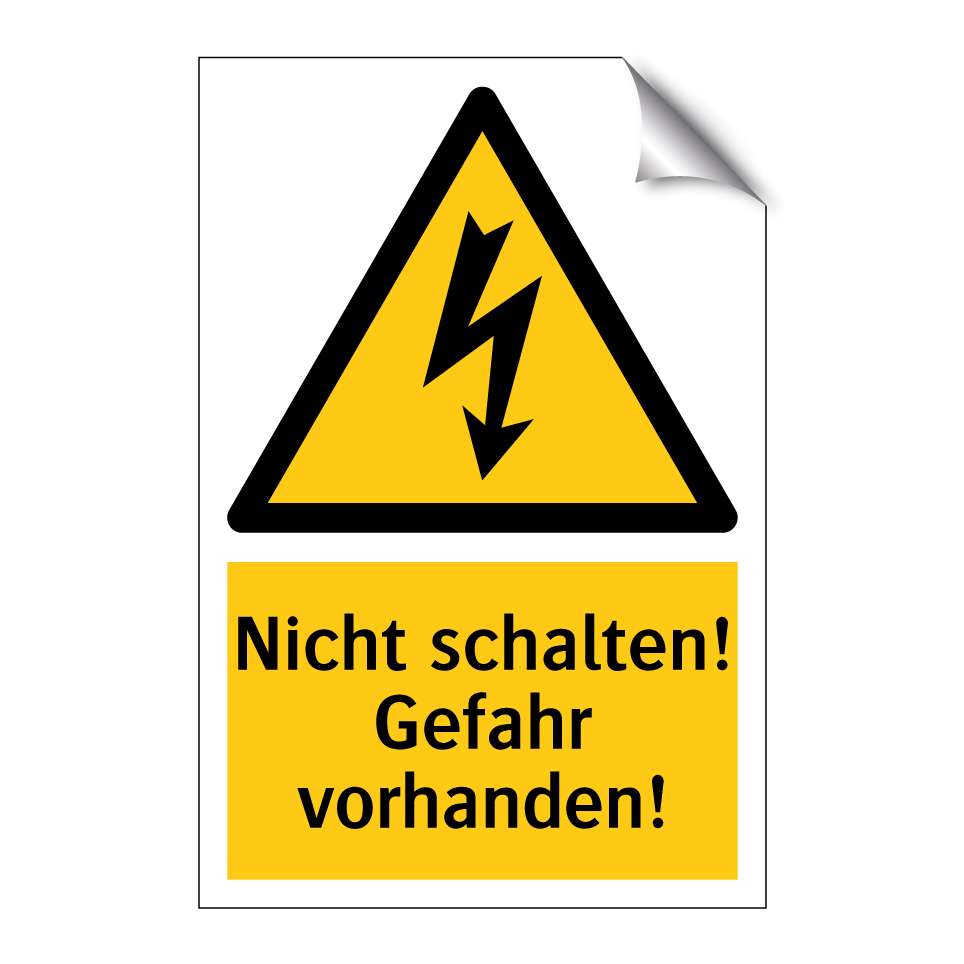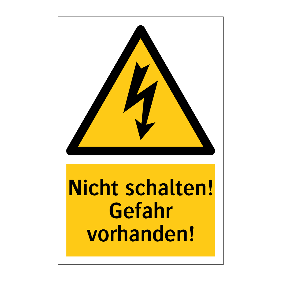 Warnschild mit dem Text Nicht schalten! Gefahr vorhanden!
