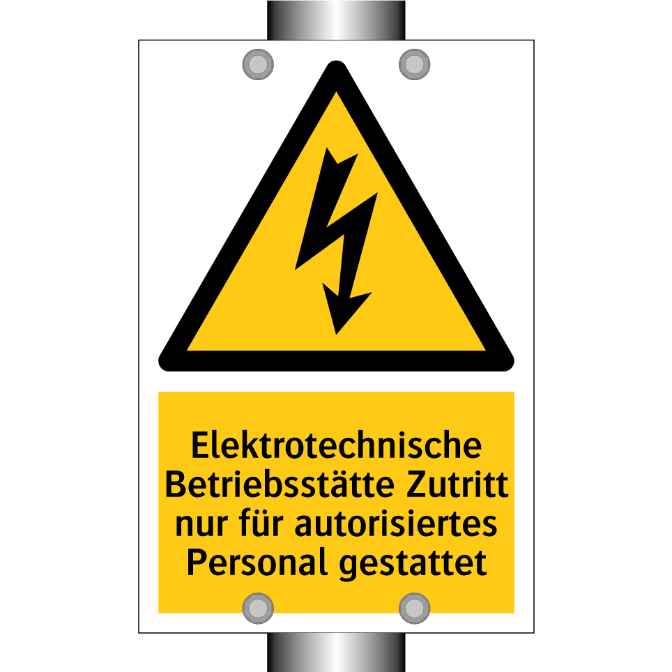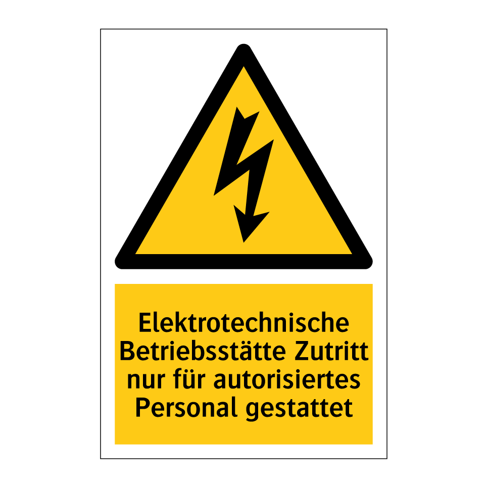 Warnschild mit dem Text Elektrotechnische Betriebsstätte Zutritt nur für autorisiertes Personal gestattet