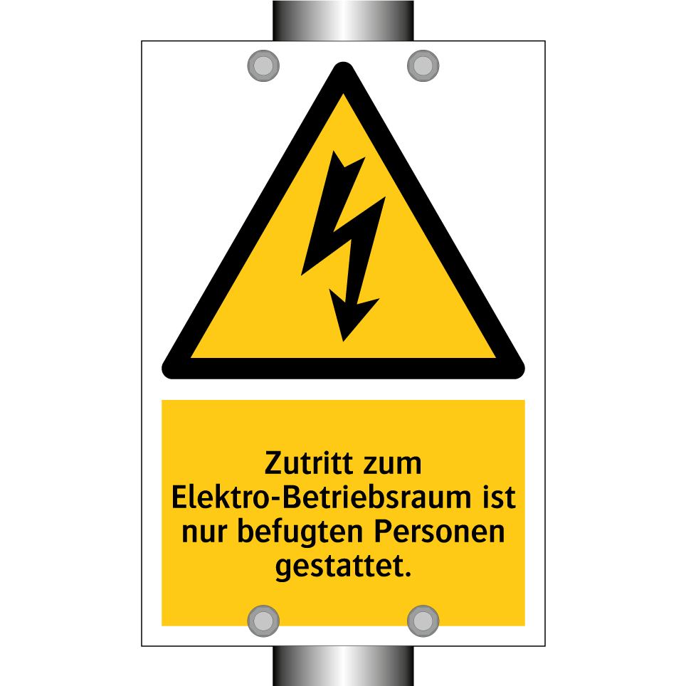 Warnschild mit dem Text Zutritt zum Elektro-Betriebsraum ist nur befugten Personen gestattet.