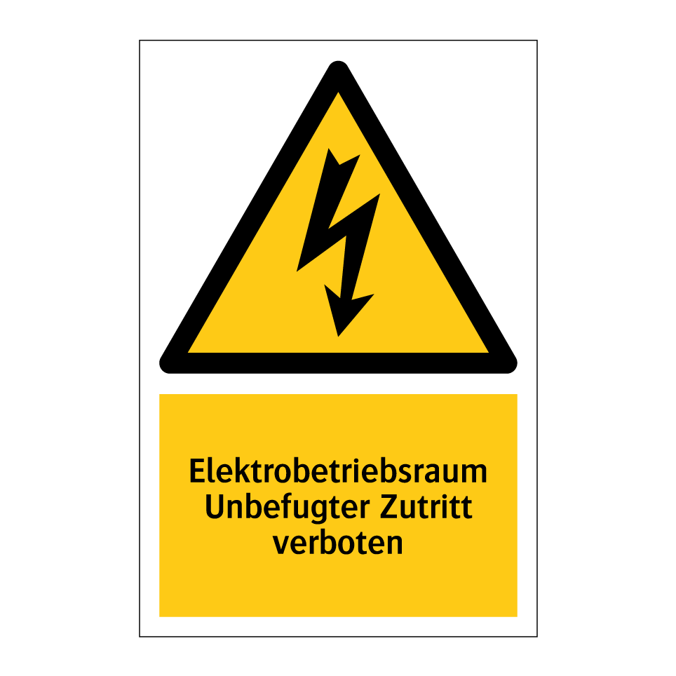 Warnschild mit dem Text Elektrobetriebsraum Unbefugter Zutritt verboten