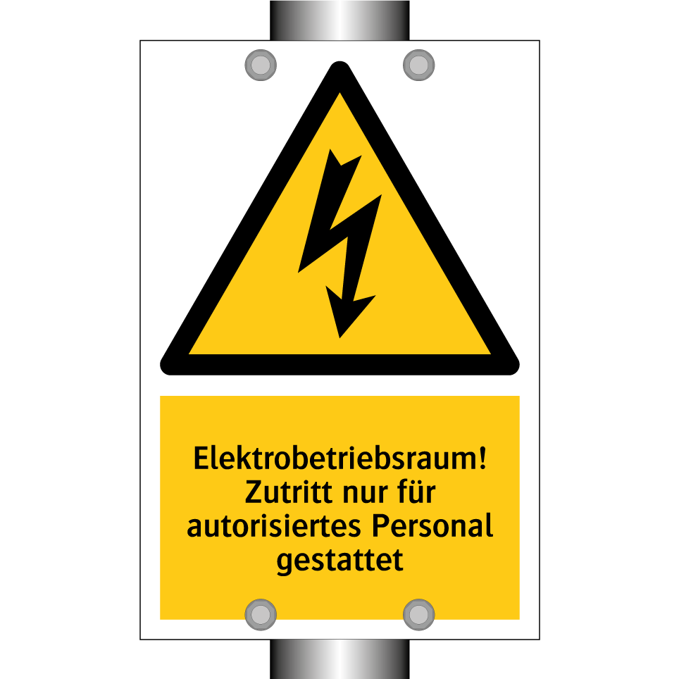 Warnschild mit dem Text Elektrobetriebsraum! Zutritt nur für autorisiertes Personal gestattet