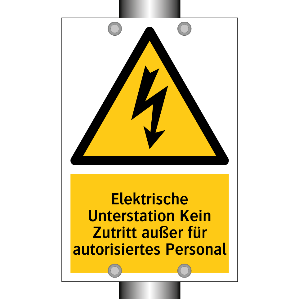 Warnschild mit dem Text Elektrische Unterstation Kein Zutritt außer für autorisiertes Personal