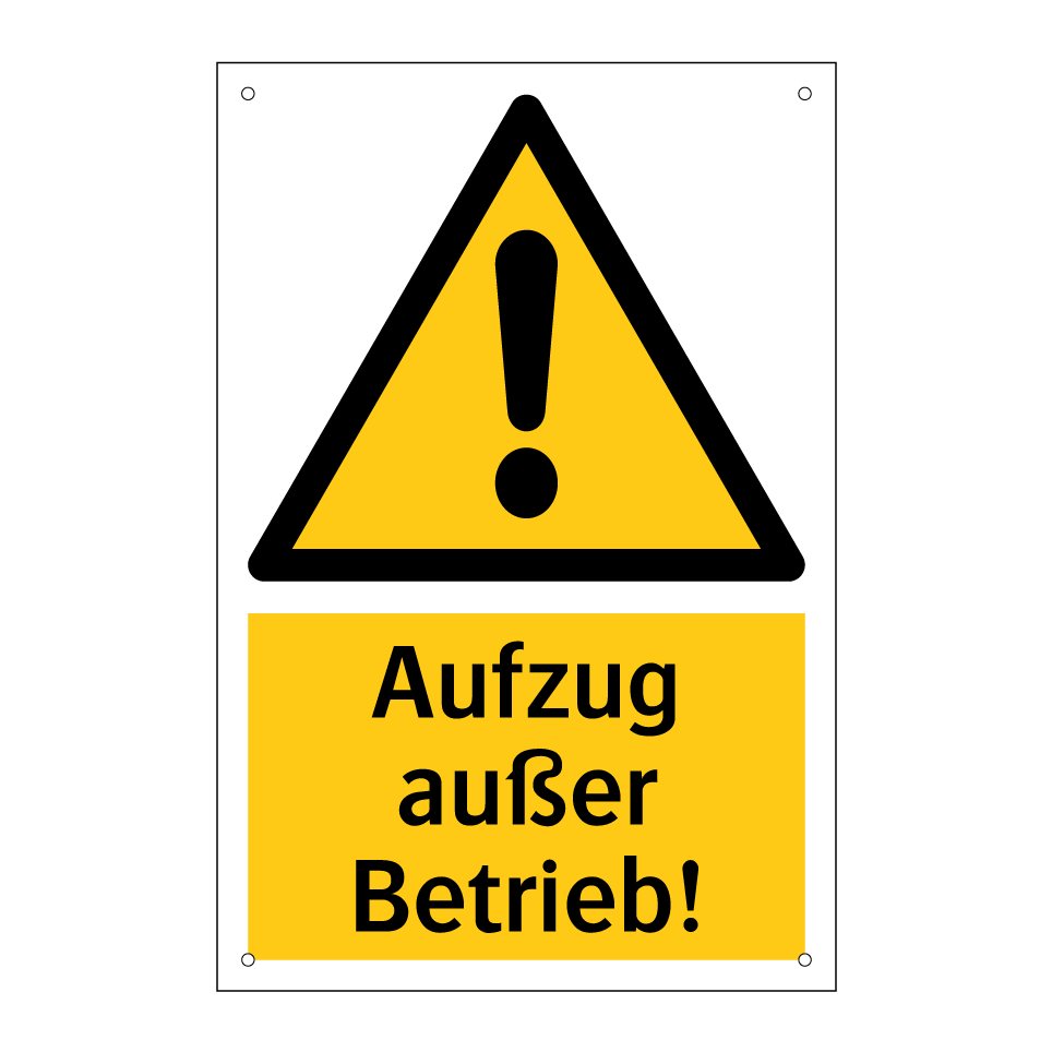 Warnschild mit dem Text Aufzug außer Betrieb!