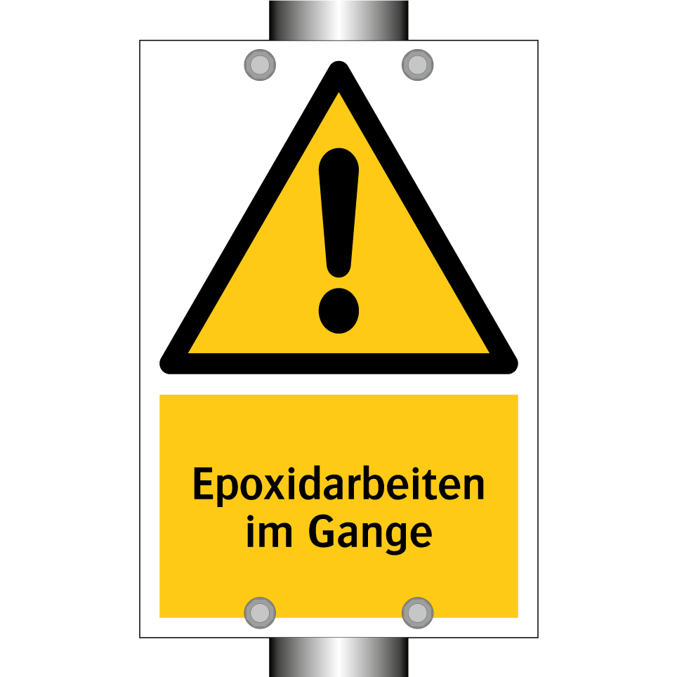 Warnschild mit dem Text Epoxidarbeiten im Gange