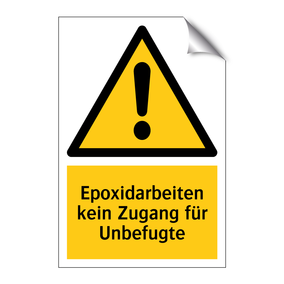 Warnschild mit dem Text Epoxidarbeiten kein Zugang für Unbefugte