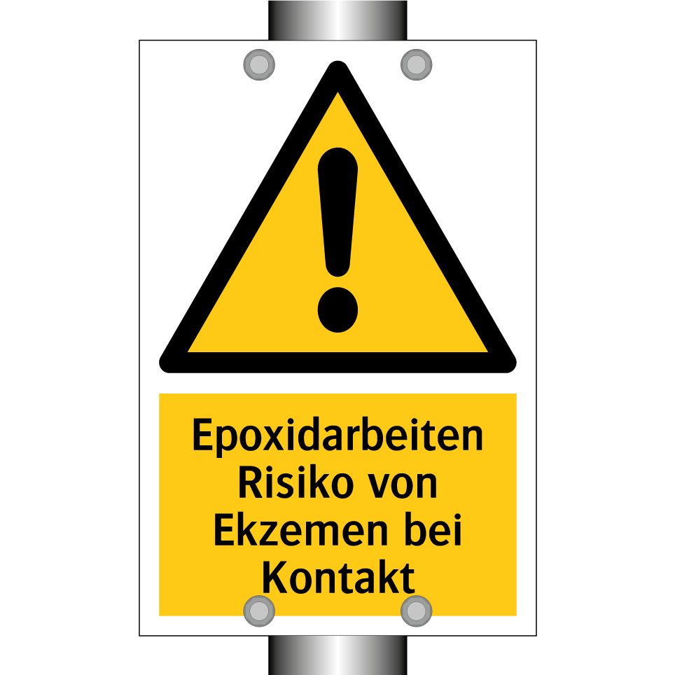 Warnschild mit dem Text Epoxidarbeiten Risiko von Ekzemen bei Kontakt