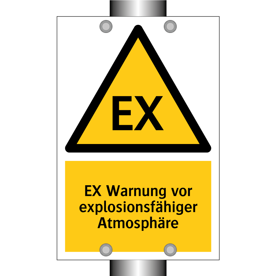 Warnschild mit dem Text EX Warnung vor explosionsfähiger Atmosphäre