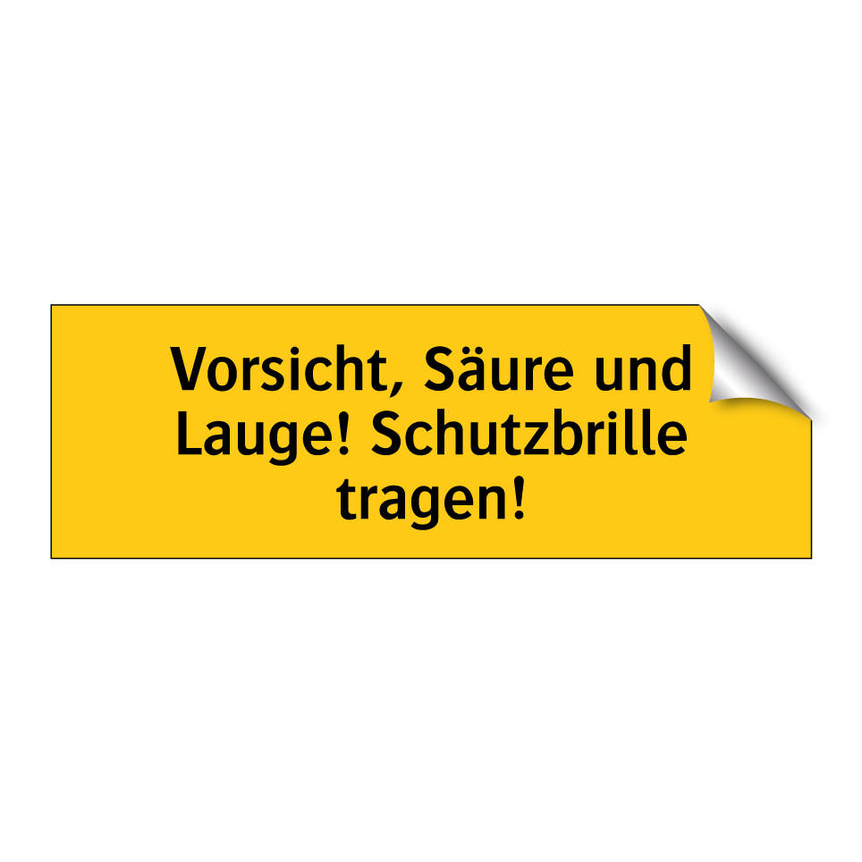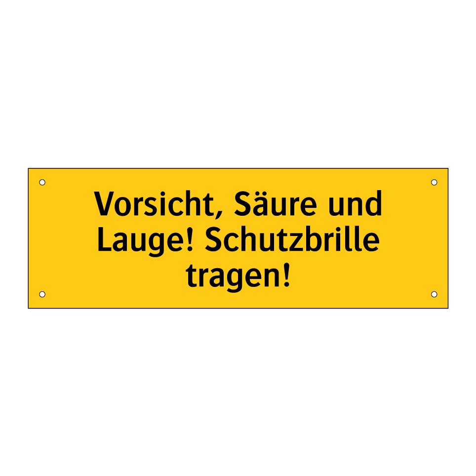 Warnschild mit dem Text Vorsicht, Säure und Lauge! Schutzbrille tragen!