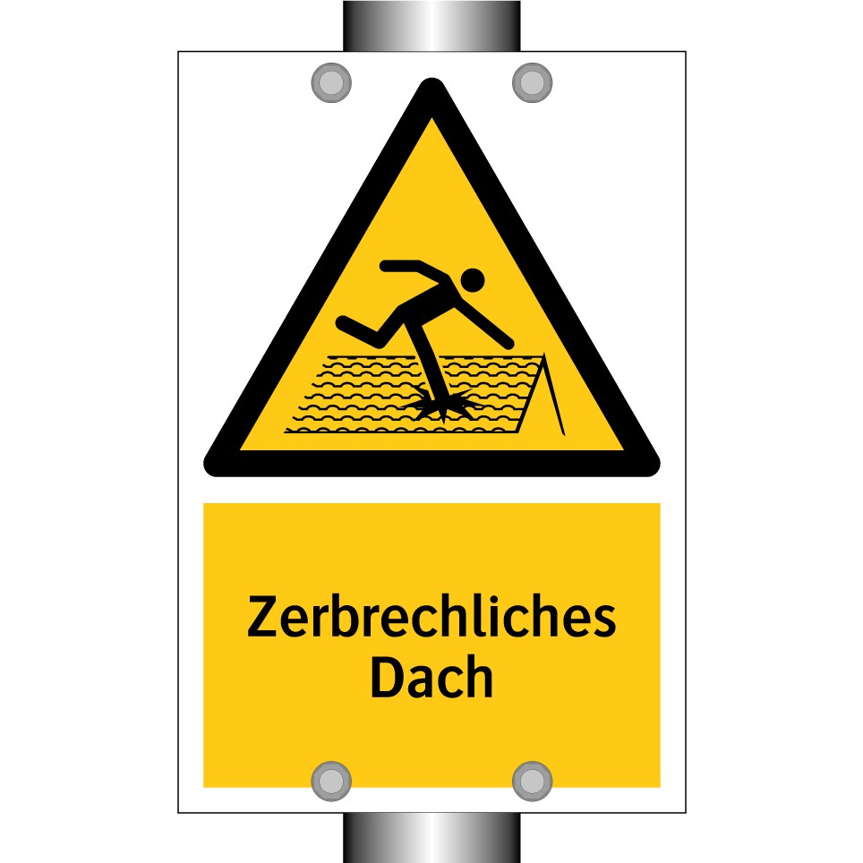 Diese auffällige Warnschild mit gelbem Hintergrund und schwarzem Text ist ideal, um auf potenzielle Gefahren hinzuweisen. Sie eignet sich hervorragend für den Einsatz in Bereichen, in denen das Dach zerbrechlich ist und besondere Vorsicht geboten ist. Platzieren Sie diese Warnschilder an Eingängen zu Baustellen, Lagerhallen oder anderen industriellen Umgebungen, um Mitarbeiter und Besucher zu schützen. Die klare Symbolik und die prägnante Botschaft sorgen dafür, dass die Warnung nicht übersehen wird. Diese Warnschild ist ein unverzichtbares Element für die Sicherheit und Prävention von Unfällen in gefährdeten Bereichen.