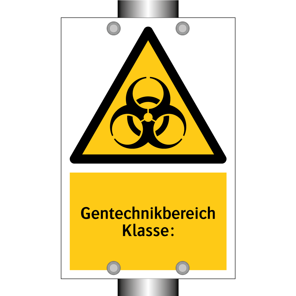 Warnschild mit dem Text Gentechnikbereich Klasse: