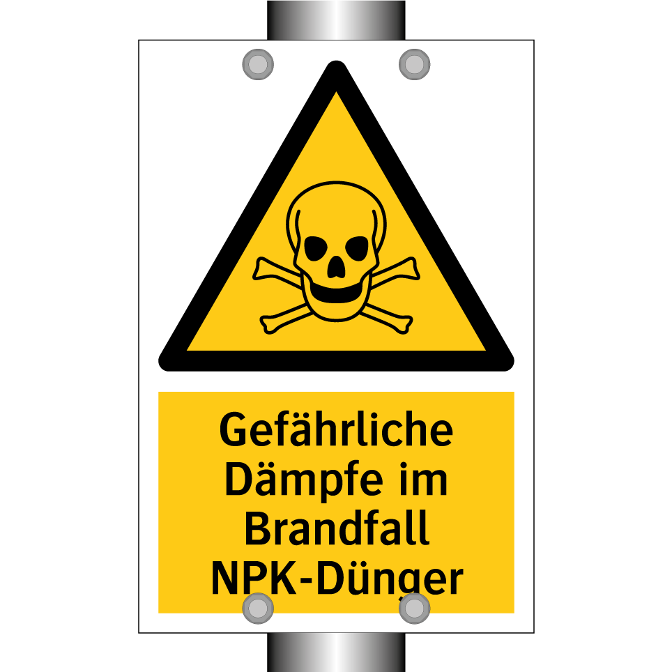 Warnschild mit dem Text Gefährliche Dämpfe im Brandfall NPK-Dünger