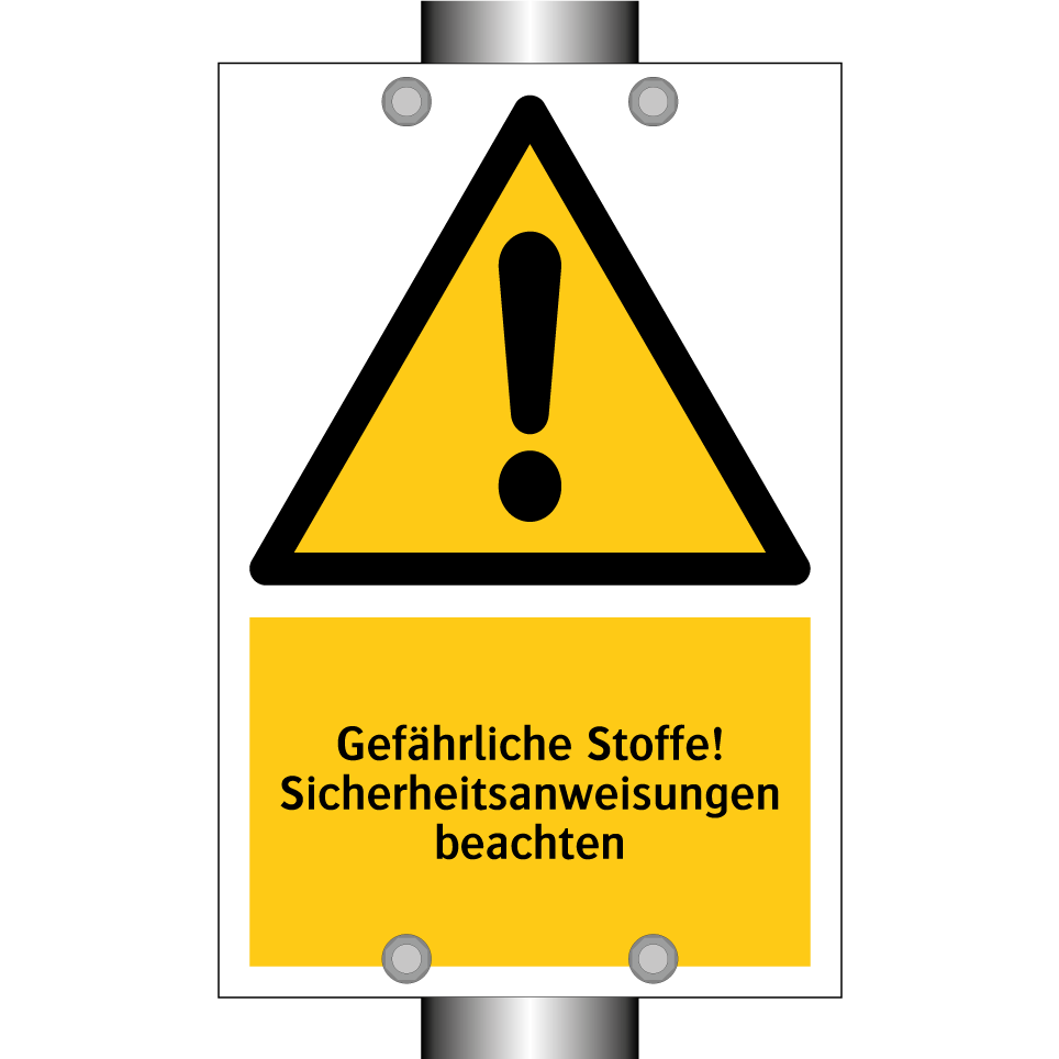 Warnschild mit dem Text Gefährliche Stoffe! Sicherheitsanweisungen beachten