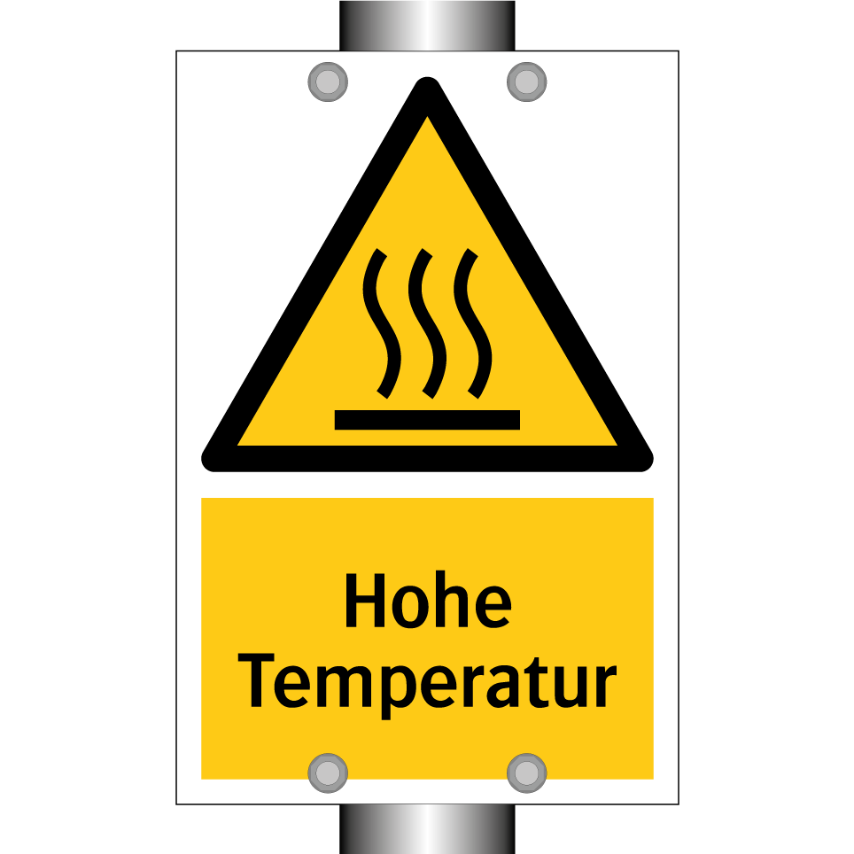 Diese auffällige Warnschild mit gelbem Hintergrund und schwarzem Text ist ideal, um auf potenziell gefährliche Bereiche hinzuweisen. Sie eignet sich hervorragend für den Einsatz in industriellen Umgebungen, wie Fabriken oder Werkstätten, wo hohe Temperaturen eine Gefahr darstellen können. Platzieren Sie die Warnschilder in der Nähe von Maschinen, Heizgeräten oder anderen Wärmequellen, um Mitarbeiter und Besucher effektiv zu warnen. Diese Sicherheitsmaßnahme trägt dazu bei, Unfälle zu vermeiden und das Bewusstsein für mögliche Risiken zu schärfen. Durch die klare Symbolik und die prägnante Botschaft wird die Aufmerksamkeit sofort auf die Gefahrenquelle gelenkt.