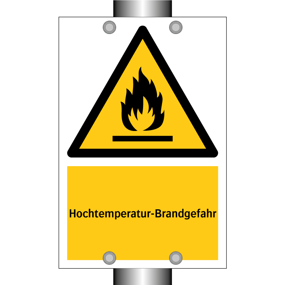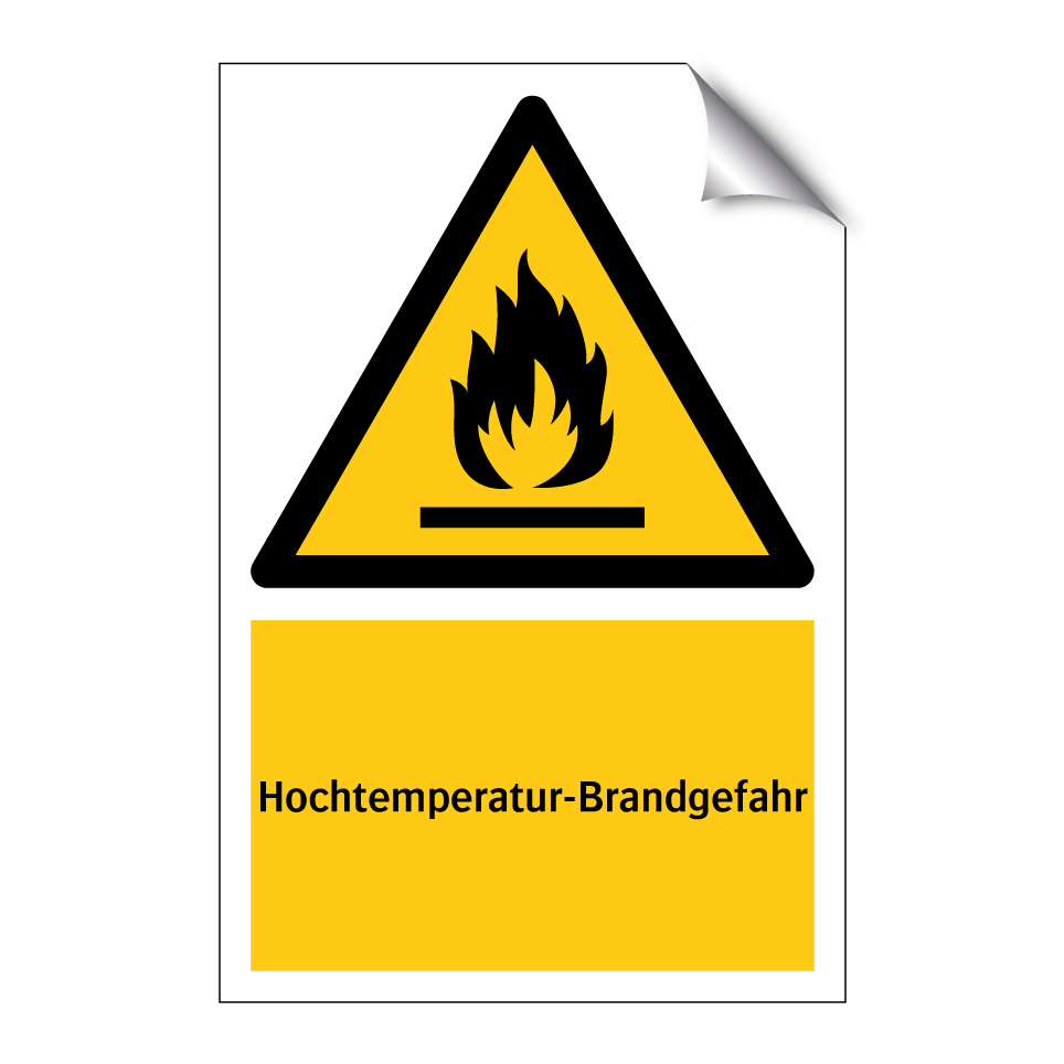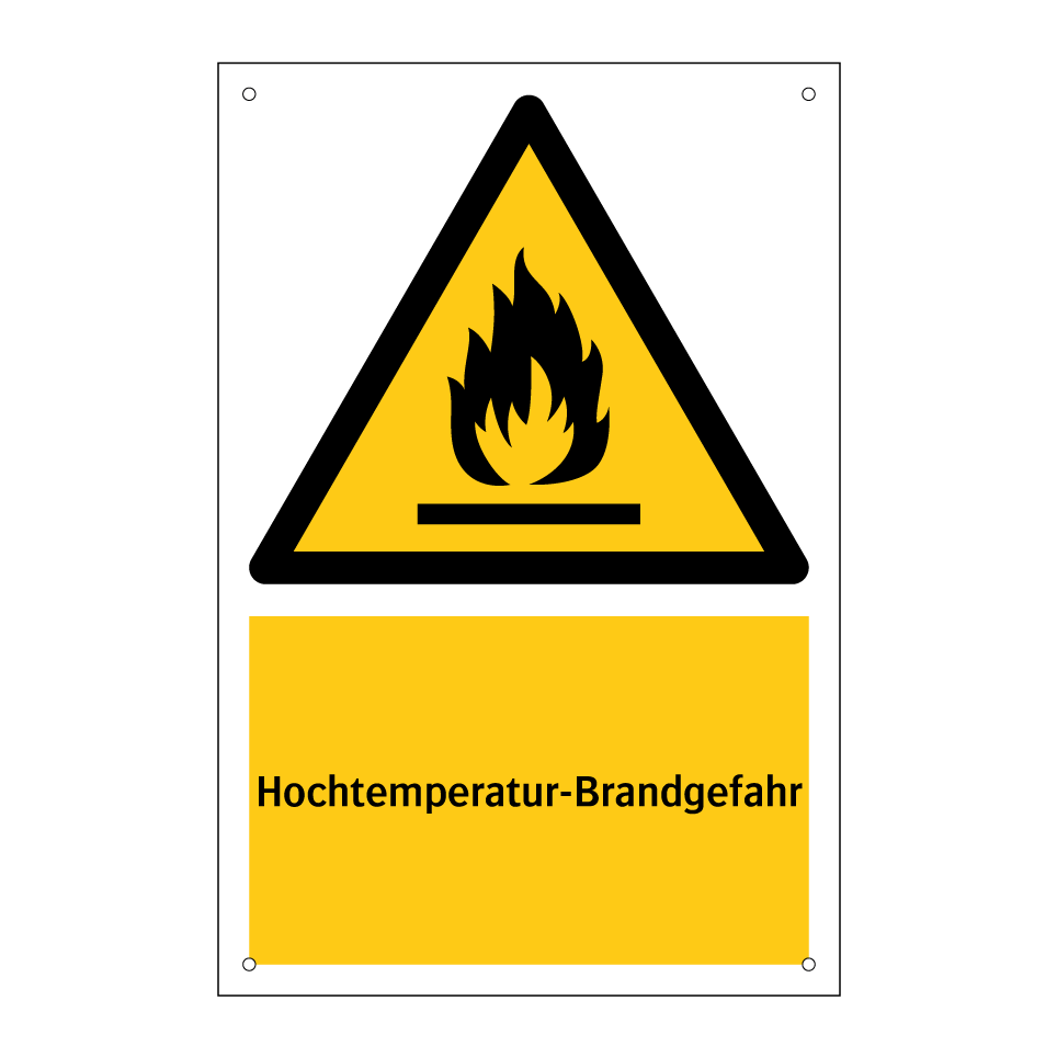 Warnschild mit dem Text Hochtemperatur-Brandgefahr