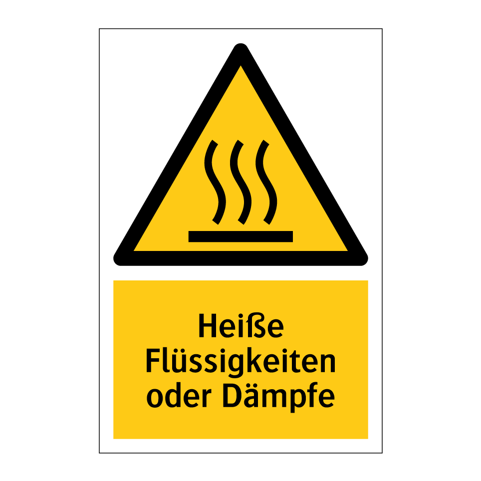 Warnschild mit dem Text Heiße Flüssigkeiten oder Dämpfe