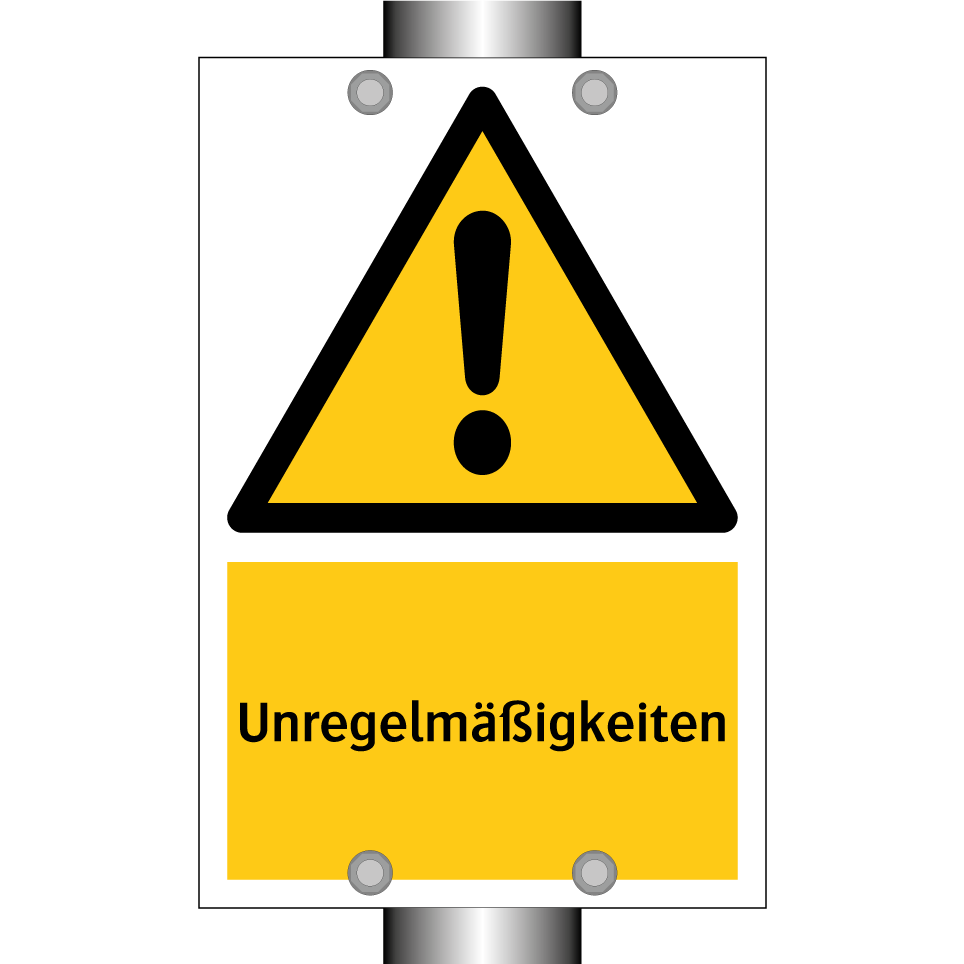 Warnschild mit dem Text Unregelmäßigkeiten