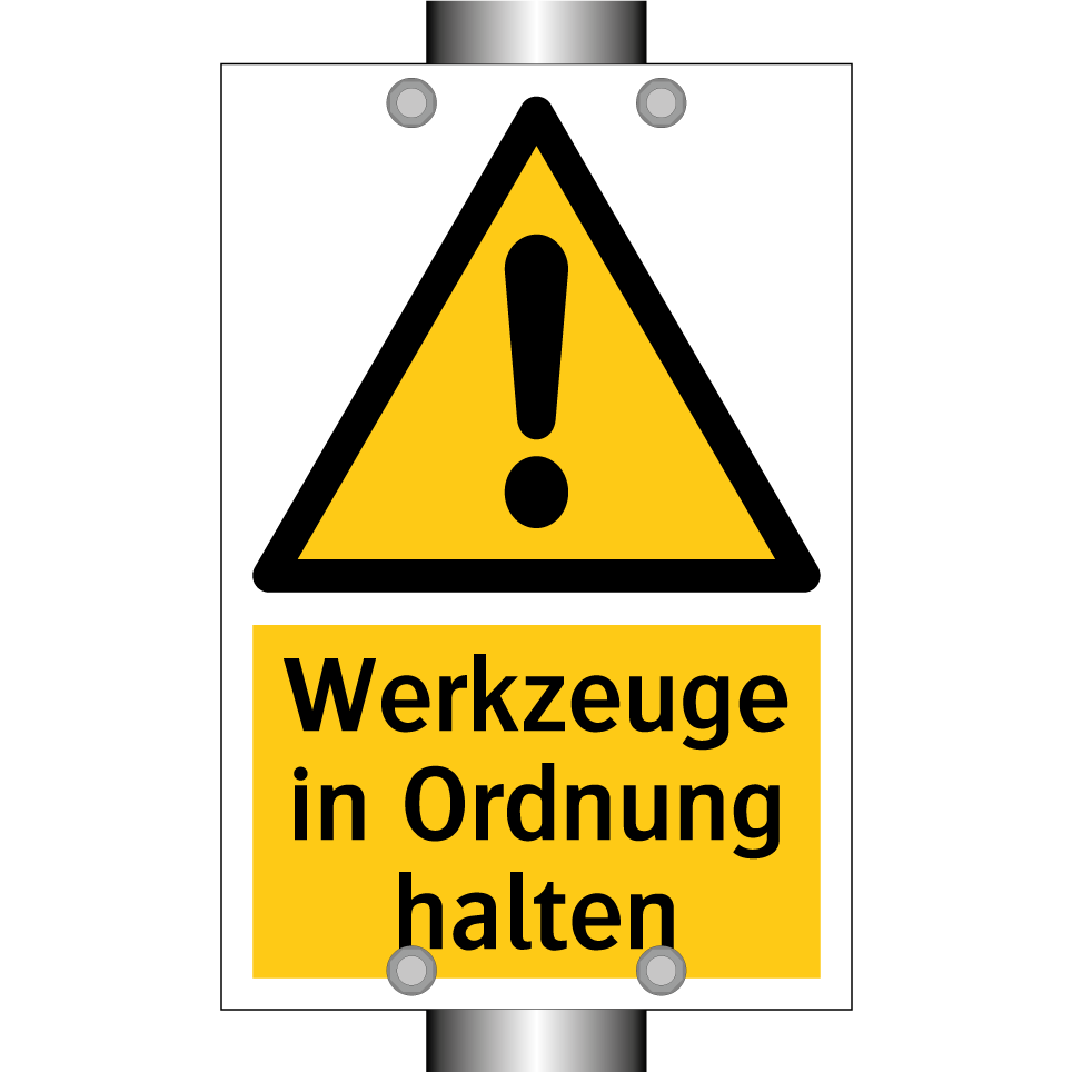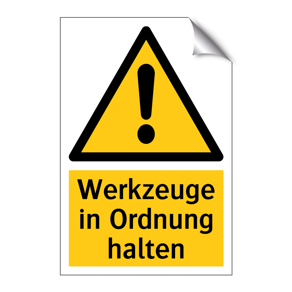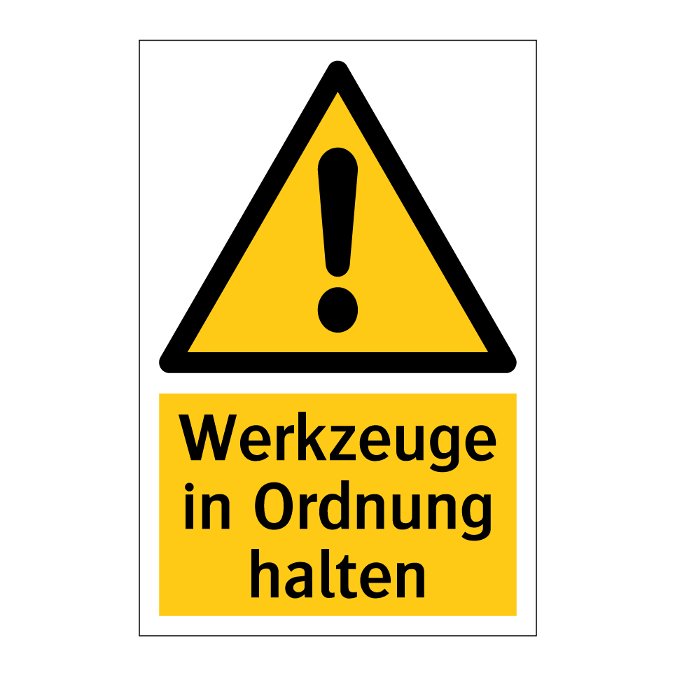 Warnschild mit dem Text Werkzeuge in Ordnung halten
