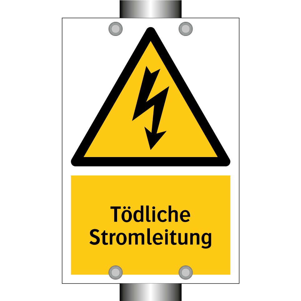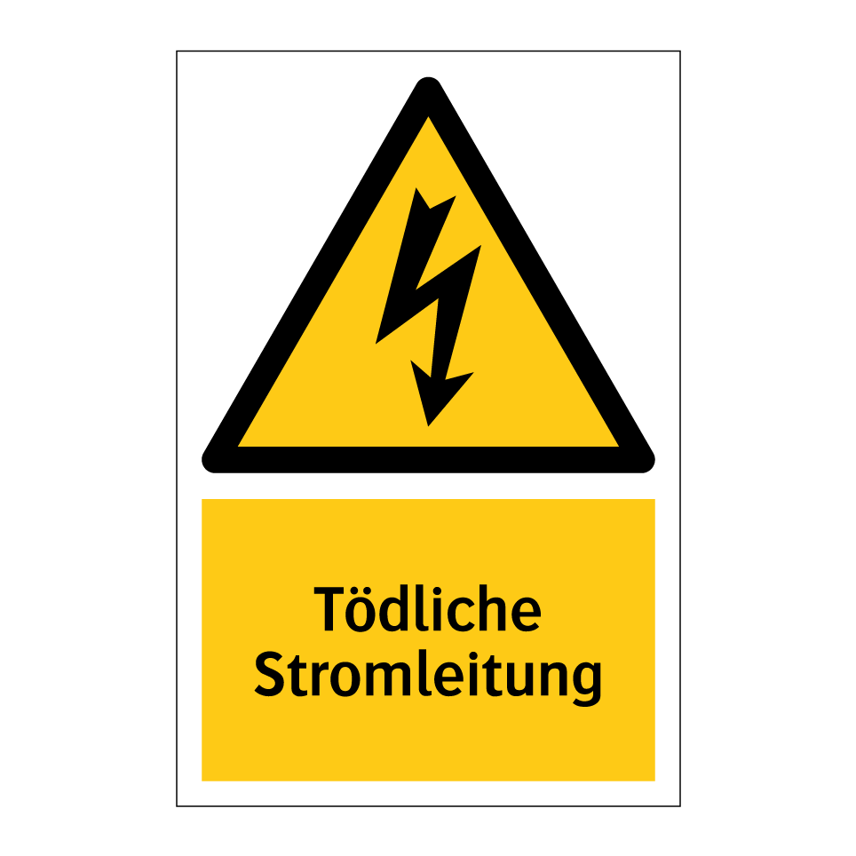 Diese auffällige Warnschild mit gelbem Hintergrund und schwarzem Text ist ideal, um auf potenziell tödliche Gefahren durch Stromleitungen hinzuweisen. Sie eignet sich hervorragend für den Einsatz in Industrieanlagen, Kraftwerken oder an Baustellen, wo Hochspannungsleitungen vorhanden sind. Die klare Symbolik und die prägnante Botschaft sorgen dafür, dass die Warnung nicht übersehen wird. Platzieren Sie die Warnschilder an gut sichtbaren Stellen, um die Sicherheit von Mitarbeitern und Besuchern zu gewährleisten. Diese Warnung ist besonders wichtig in Bereichen, in denen unbefugter Zugang verhindert werden muss, um Unfälle zu vermeiden.