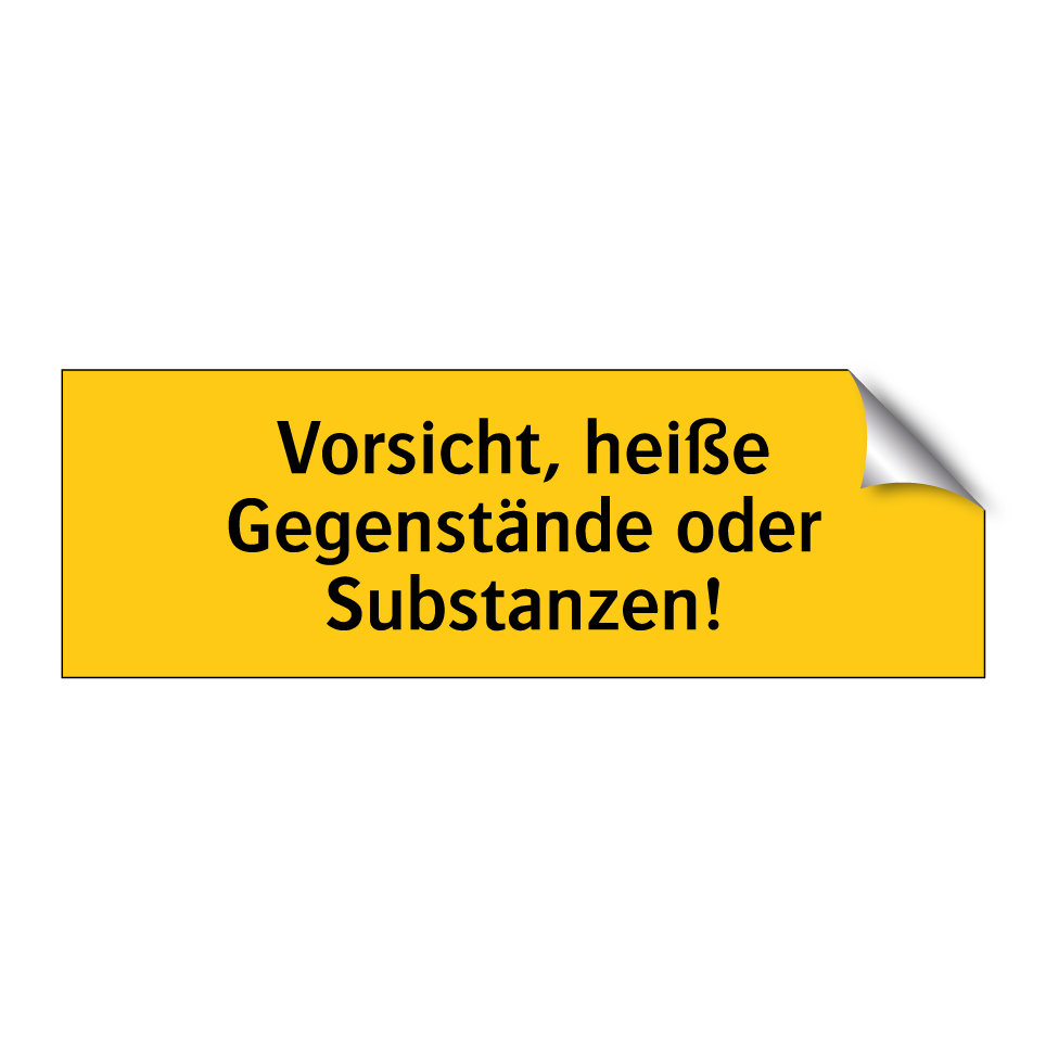 Warnschild mit dem Text Vorsicht, heiße Gegenstände oder Substanzen!