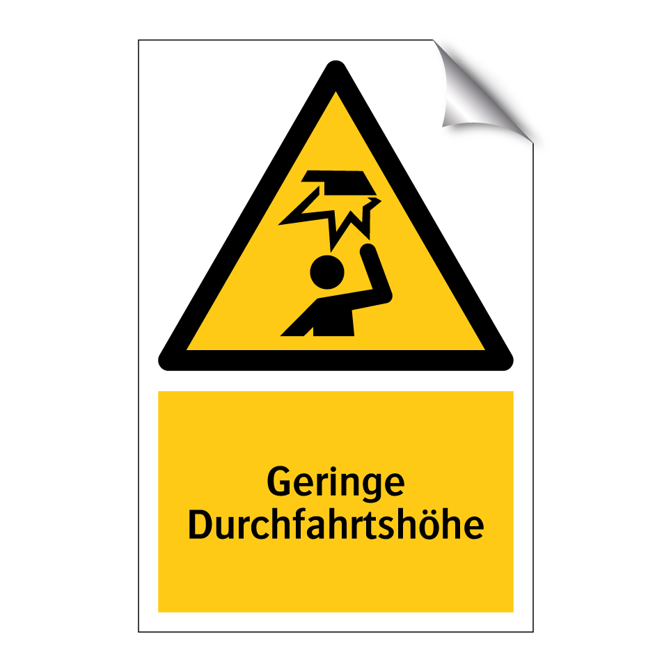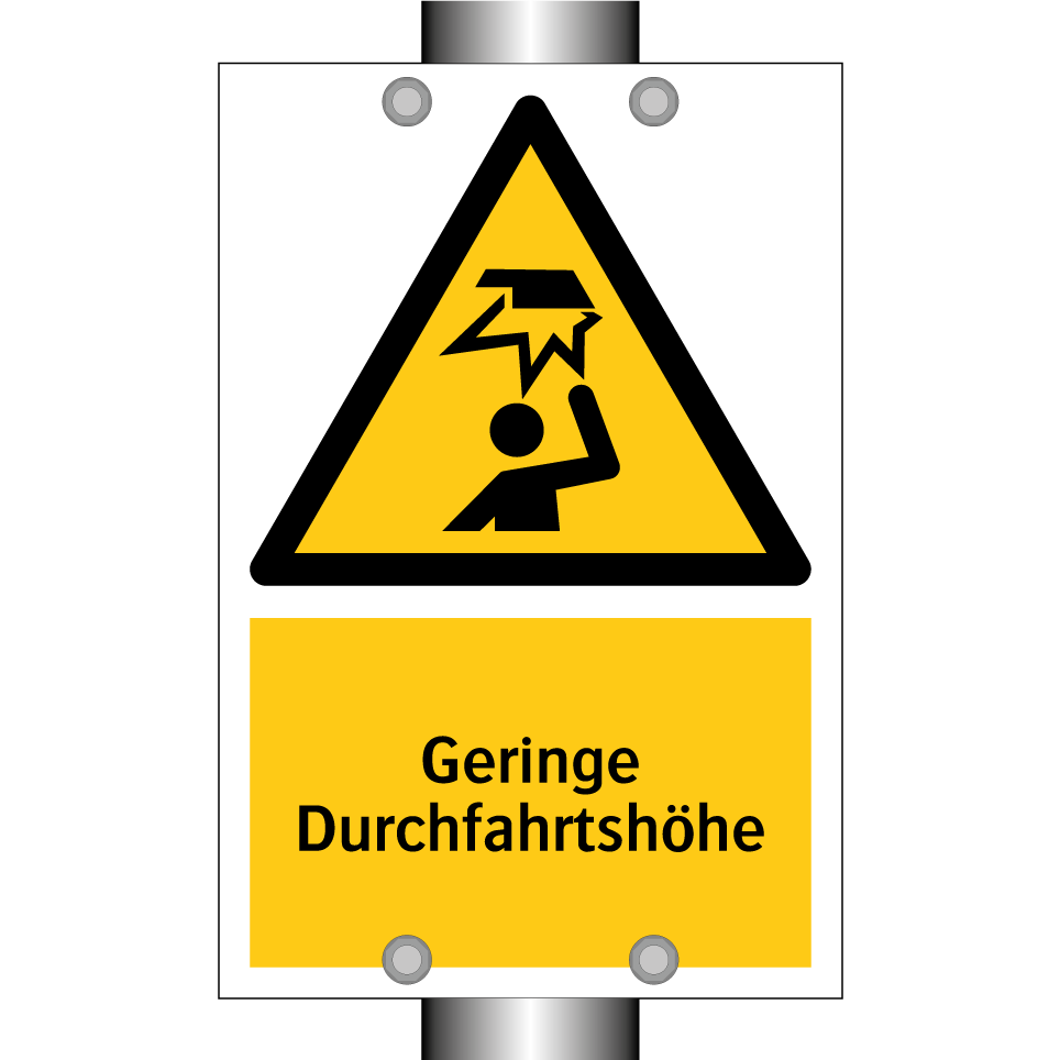 Warnschild mit dem Text Geringe Durchfahrtshöhe