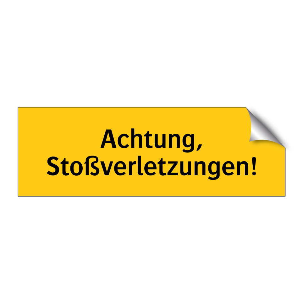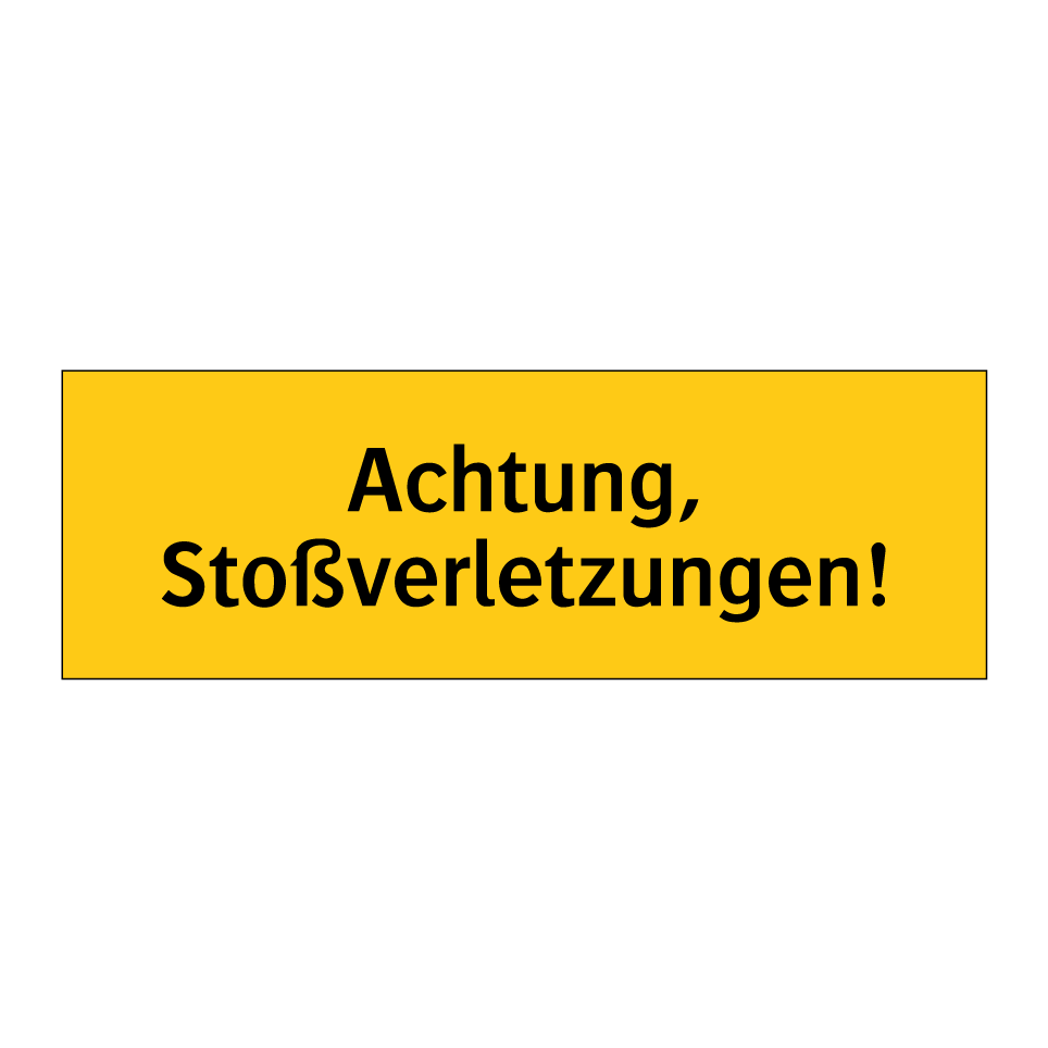 Warnschild mit dem Text Achtung, Stoßverletzungen!
