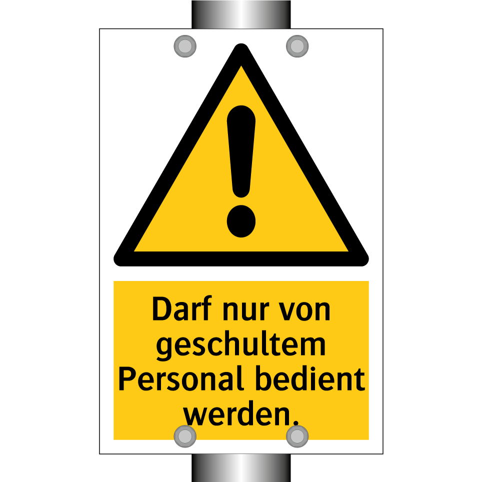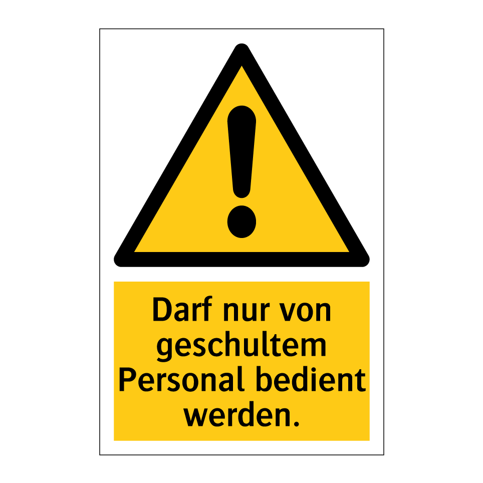 Warnschild mit dem Text Darf nur von geschultem Personal bedient werden.