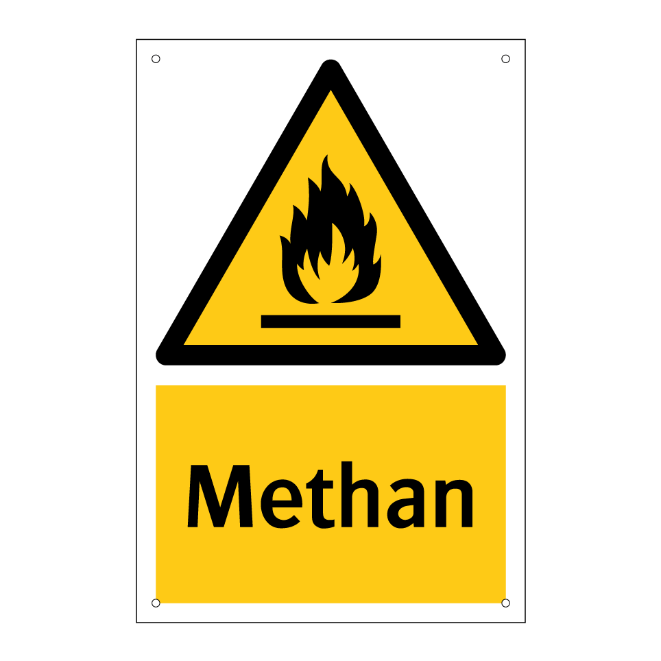 Warnschild mit dem Text Methan