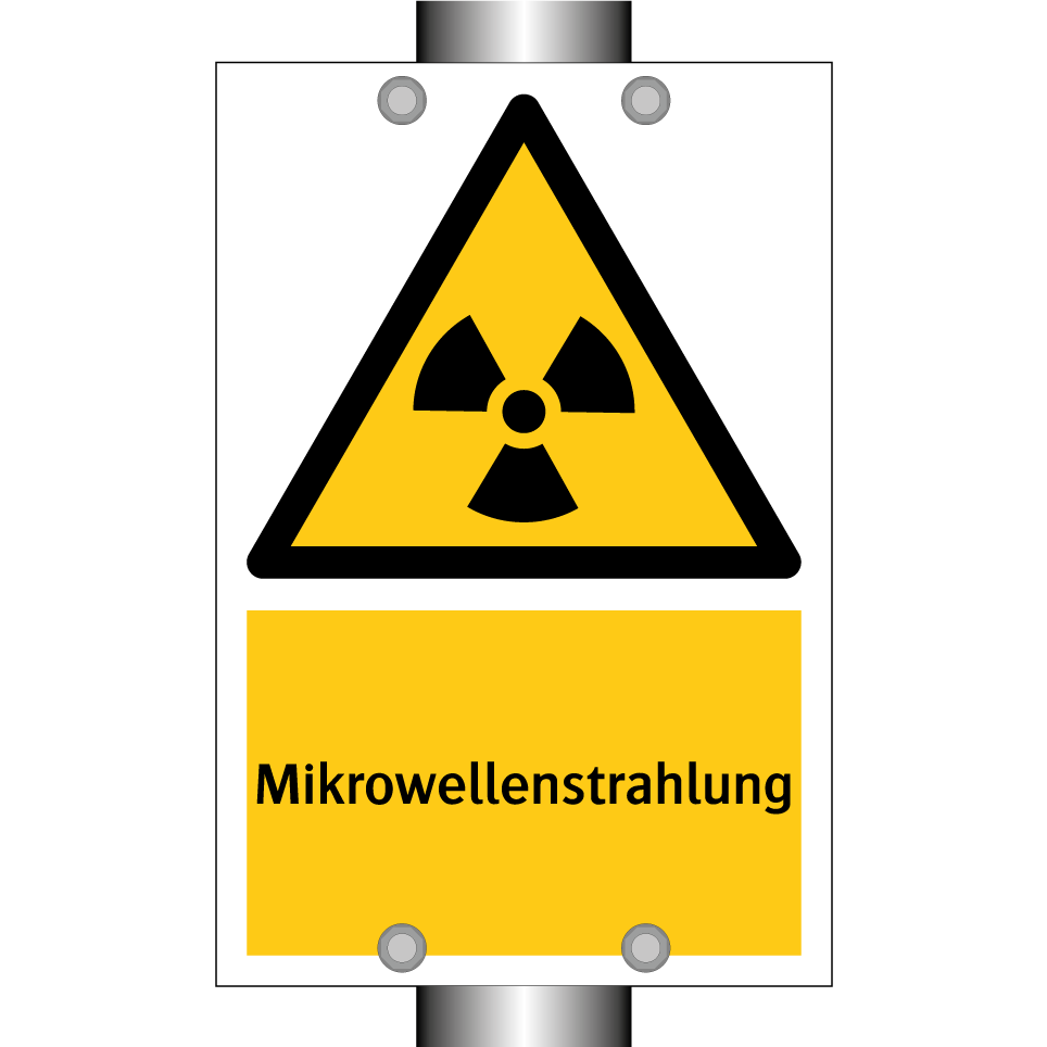 Warnschild mit dem Text Mikrowellenstrahlung
