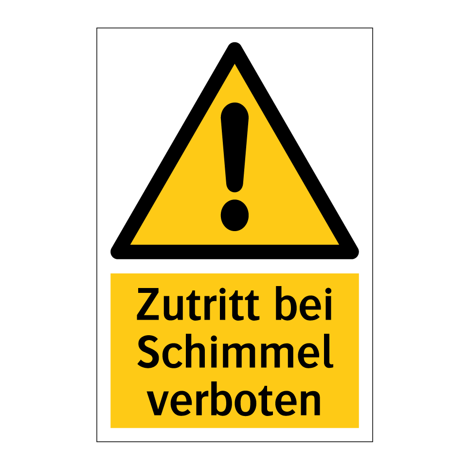 Warnschild mit dem Text Zutritt bei Schimmel verboten