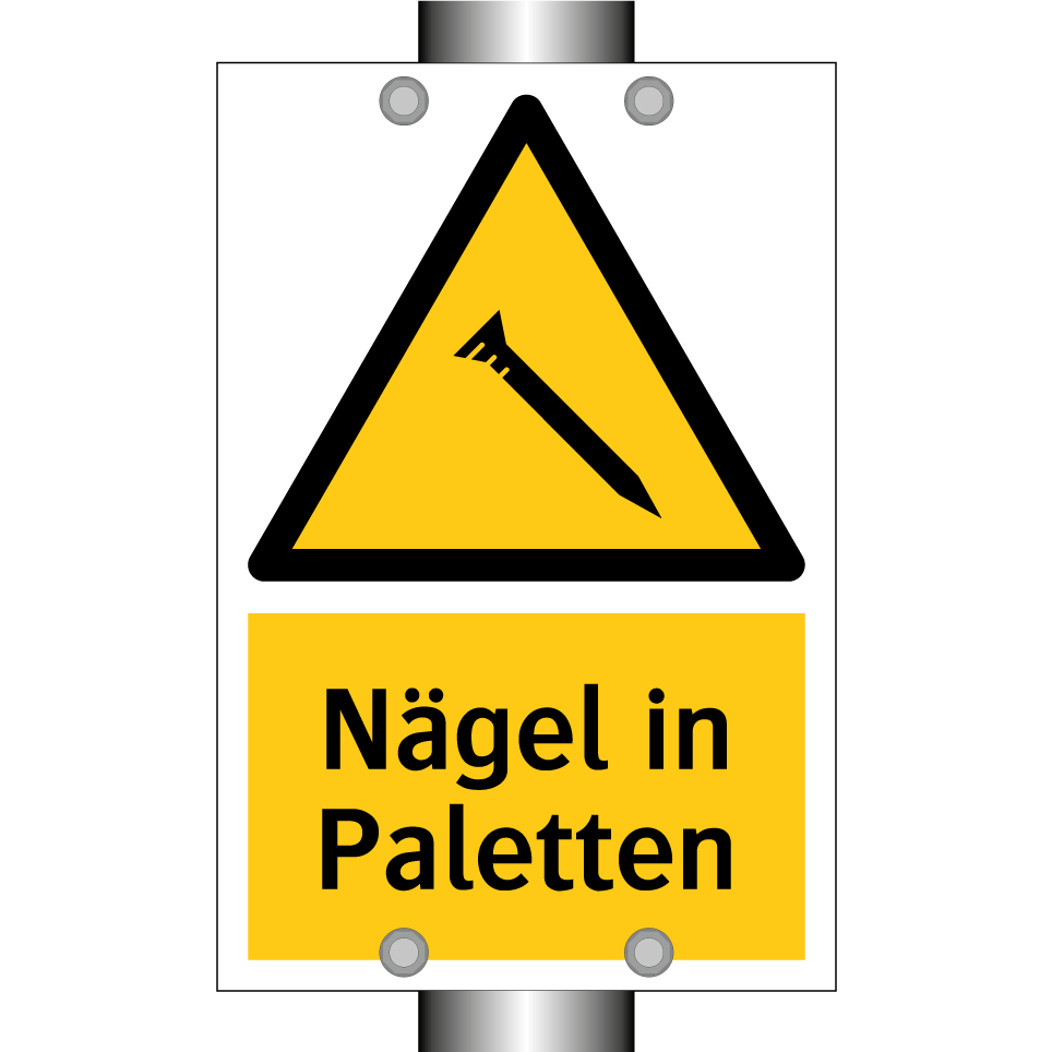 Warnschild mit dem Text Nägel in Paletten