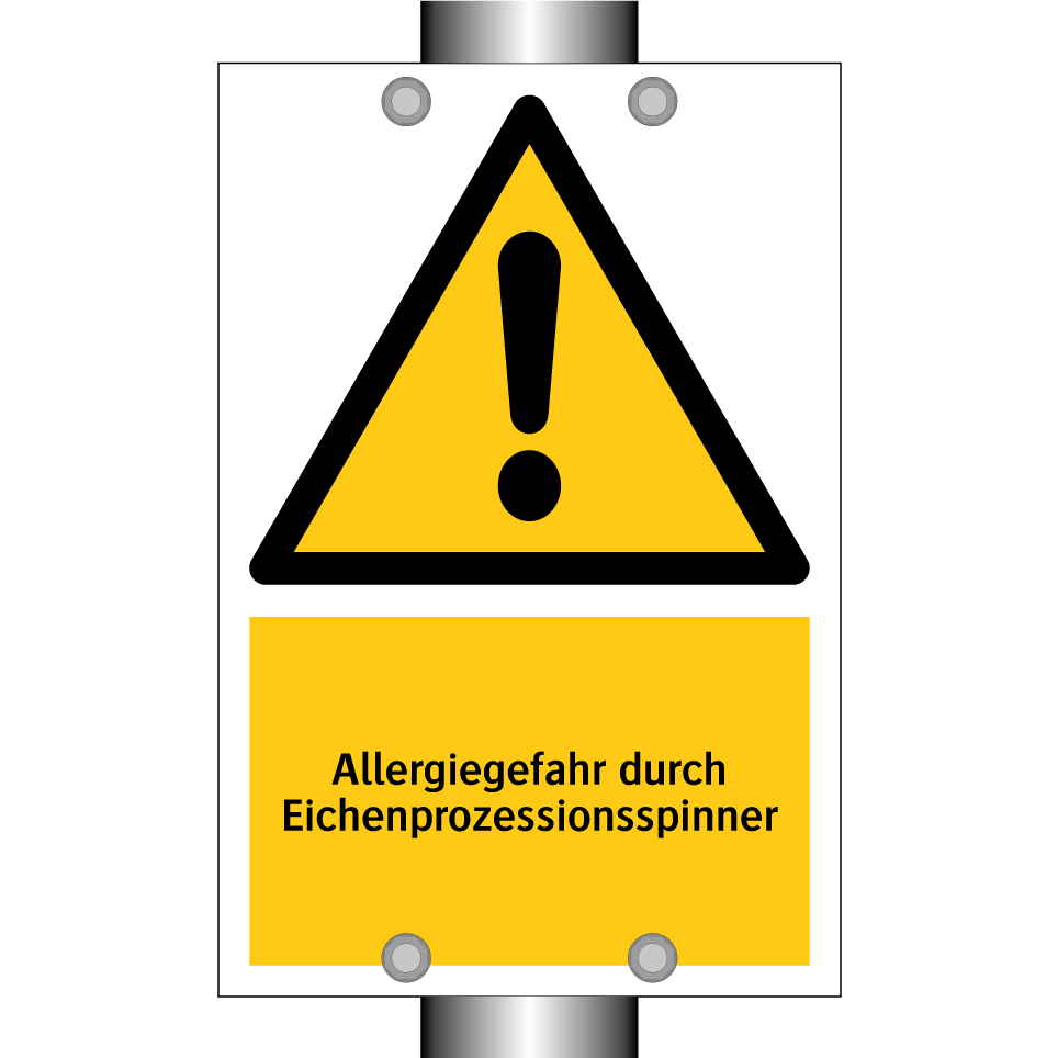 Warnschild mit dem Text Allergiegefahr durch Eichenprozessionsspinner