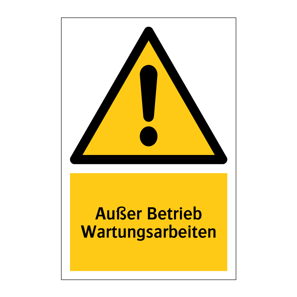 Warnschild mit dem Text Außer Betrieb Wartungsarbeiten