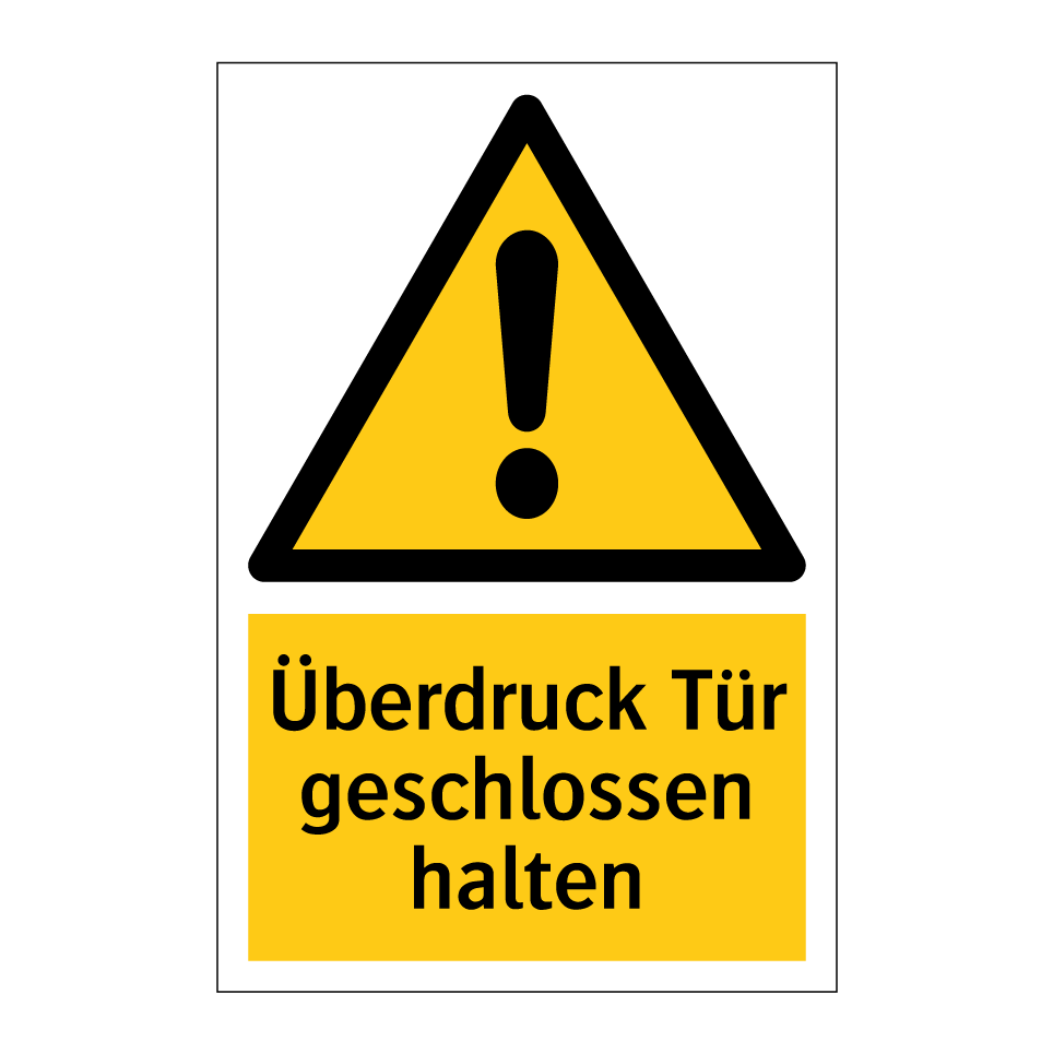 Warnschild mit dem Text Überdruck Tür geschlossen halten