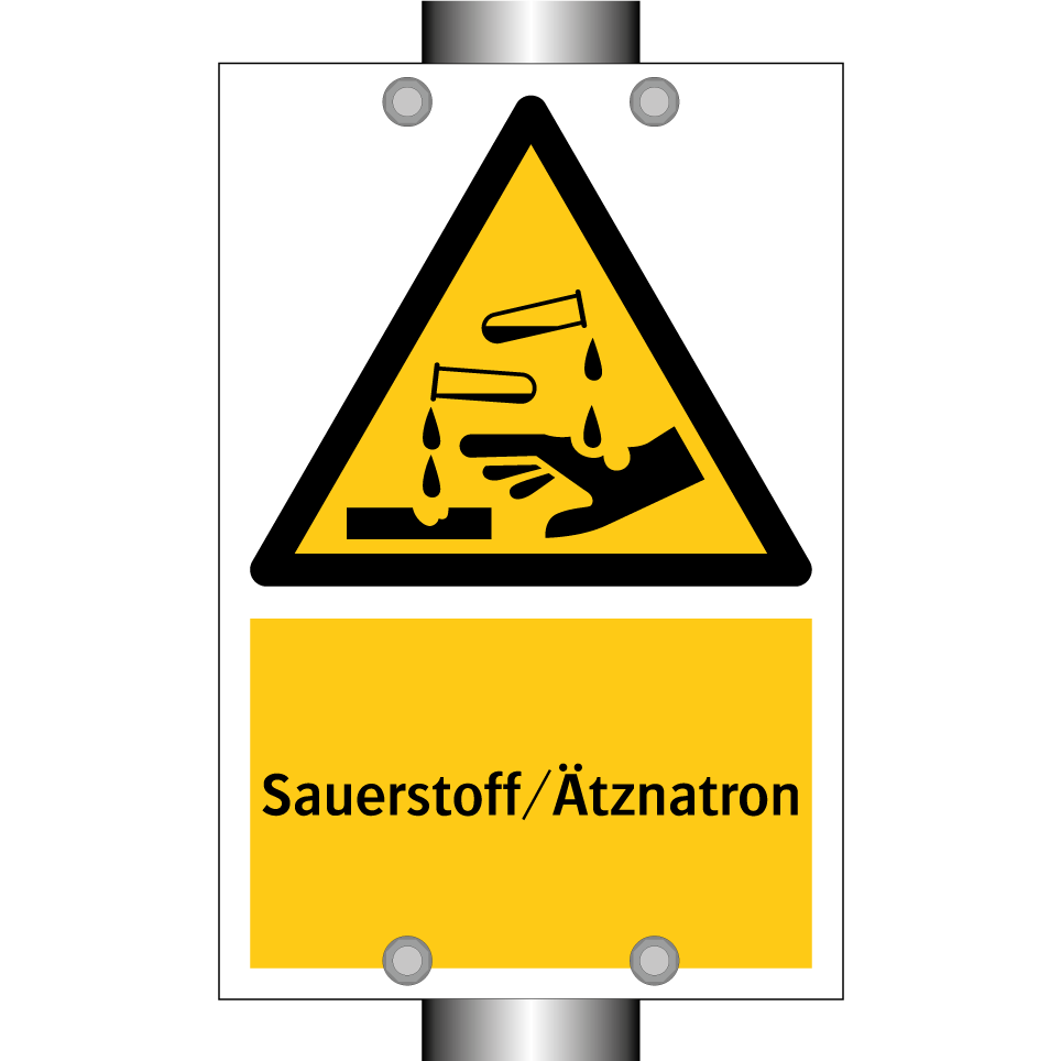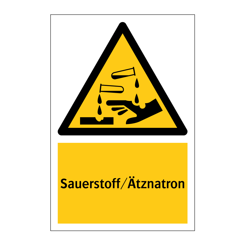Warnschild mit dem Text Sauerstoff/Ätznatron