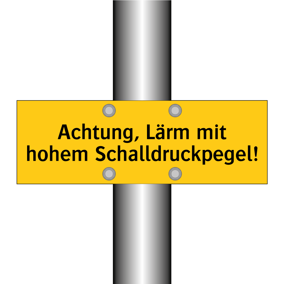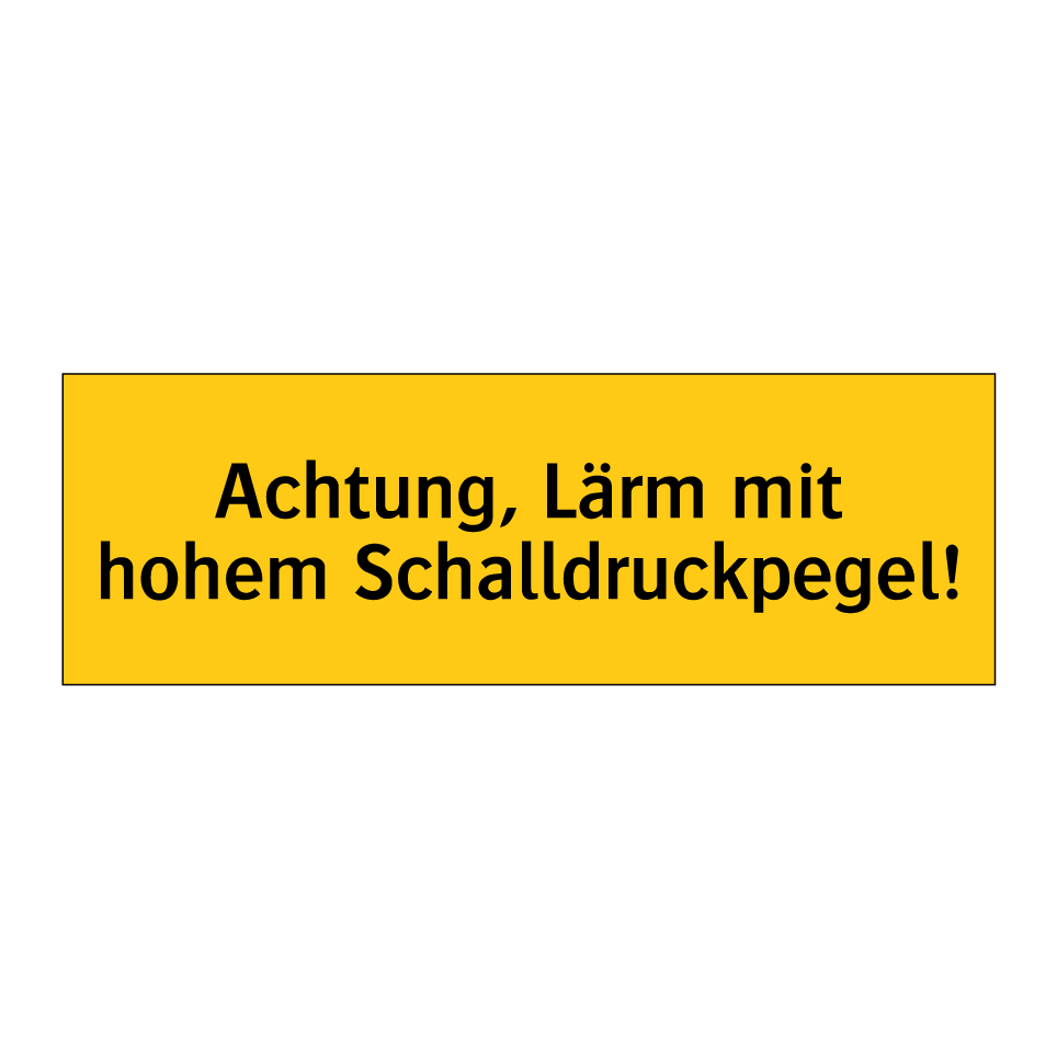 Warnschild mit dem Text Achtung, Lärm mit hohem Schalldruckpegel!