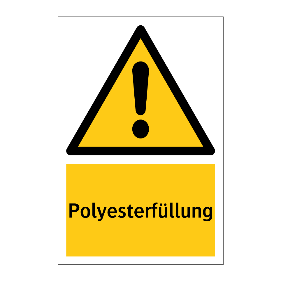 Diese auffällige Warnschild mit gelbem Hintergrund und schwarzer Schrift ist ideal, um auf potenzielle Gefahren hinzuweisen. Die klare Symbolik und der prägnante Text machen sie unverzichtbar in Bereichen, in denen auf die Verwendung von Polyesterfüllungen aufmerksam gemacht werden muss. Ob in Lagerhallen, Produktionsstätten oder anderen industriellen Umgebungen – diese Warnschilder sind essenziell, um die Sicherheit zu gewährleisten und Mitarbeiter sowie Besucher zu informieren. Platzieren Sie das Schild an gut sichtbaren Stellen, um sicherzustellen, dass die Botschaft effektiv kommuniziert wird. Nutzen Sie diese Warnschild, um Risiken zu minimieren und ein sicheres Arbeitsumfeld zu schaffen.